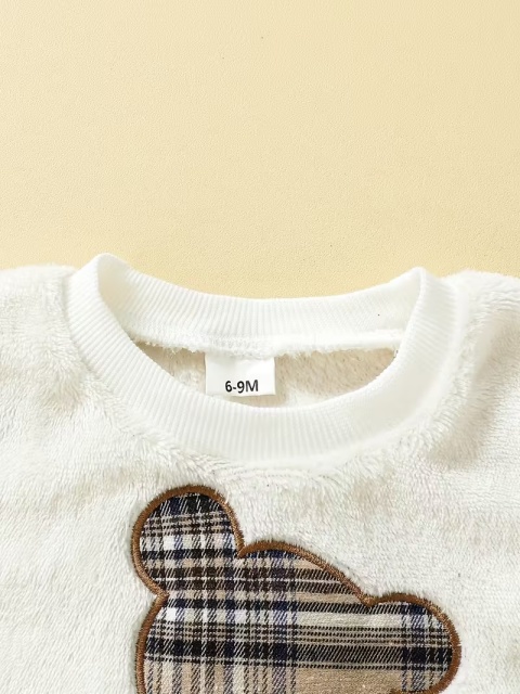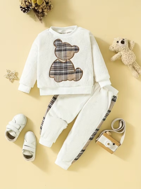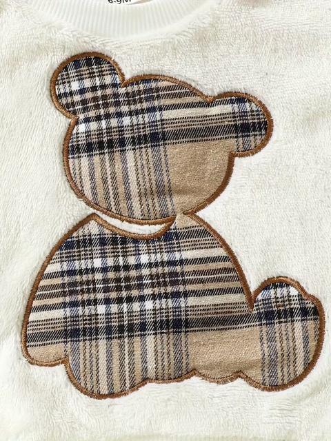 Acest produs Set bebelusi cu ursulet si detalii in carouri – Bluza + pantaloni, moale si calduros este model MBTU138