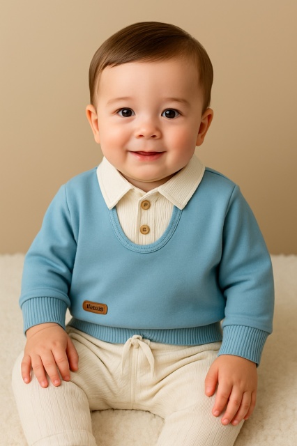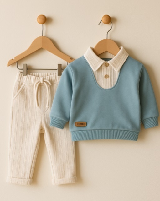 Acest produs Set bebelusi elegant bleu cu camasa integrata si pantaloni crem este model TRMBm0775