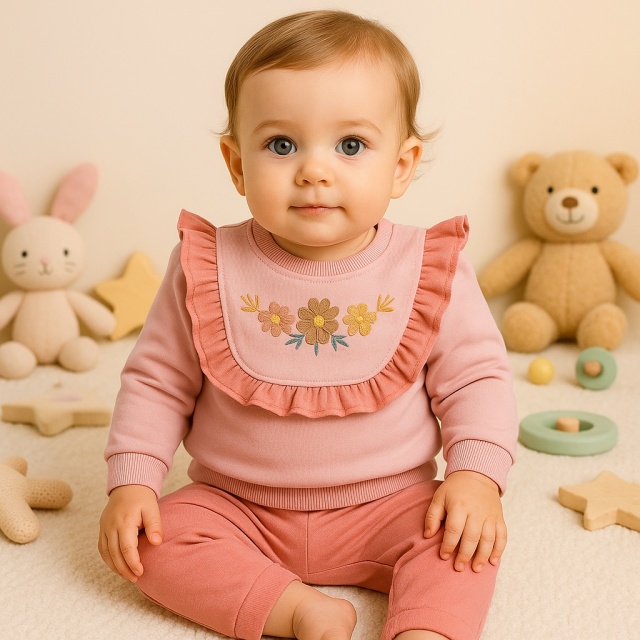 Acest produs Set bebelusi roz pudra cu floricele brodate – 2 piese moi si confortabile este model TRMD1133