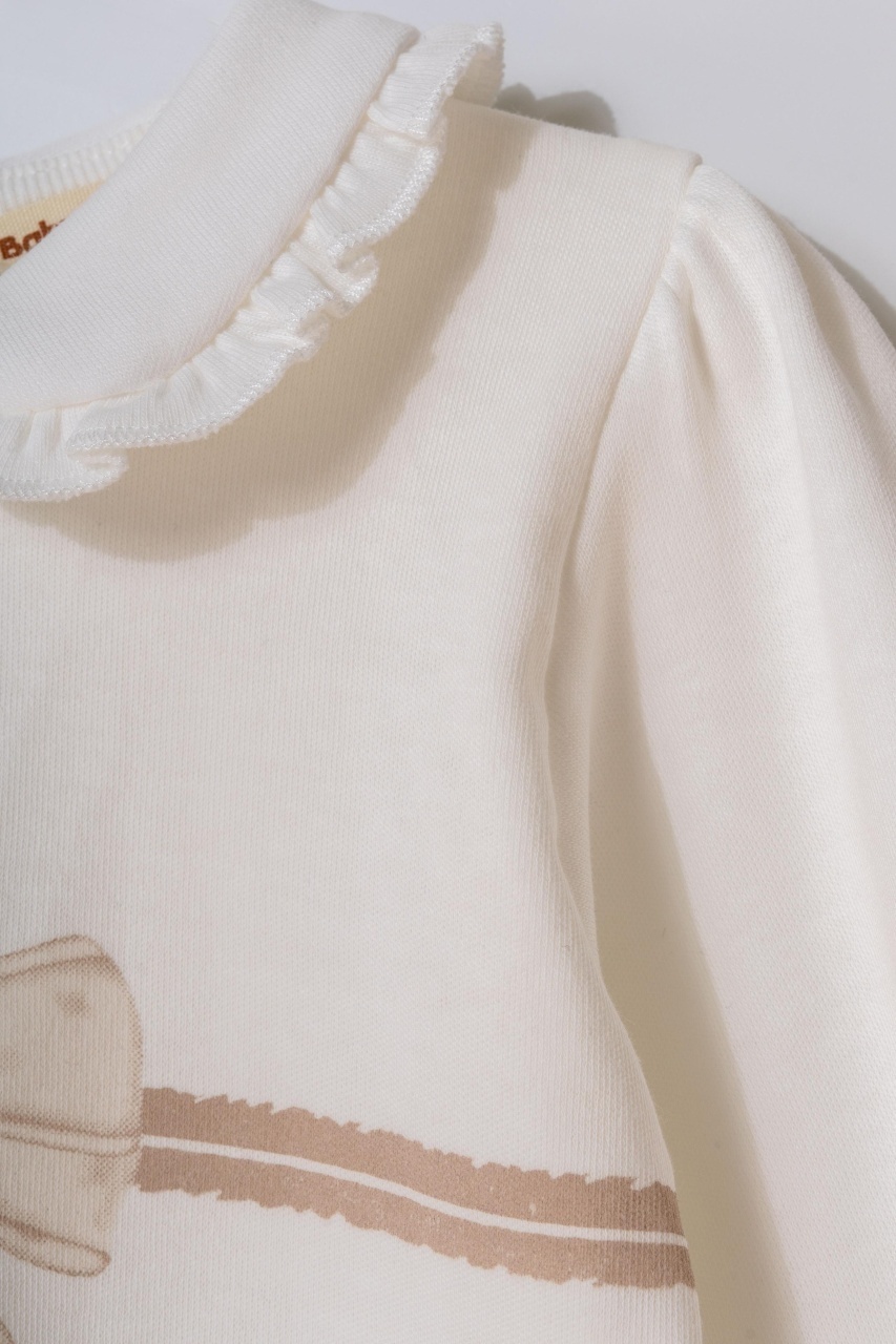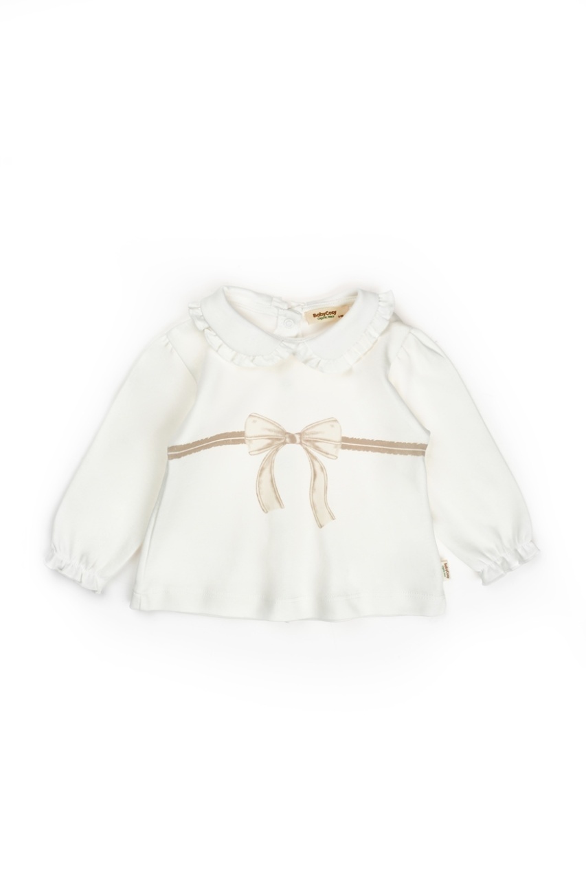 Un set delicat și rafinat, ideal pentru micuța ta! Confecționat din bumbac organic 100% certificat GOTS, material moale, hipoalergenic și prietenos cu pielea sensibilă a bebelușului. Bluzița are un guler cu volănaș și un imprimeu fin cu fundiță, iar închiderea cu nasturi pe spate permite îmbrăcarea ușoară și fără disconfort. Pantalonașii sunt moi și elastici în talie, într-o nuanță pudrată, foarte delicată și elegantă.