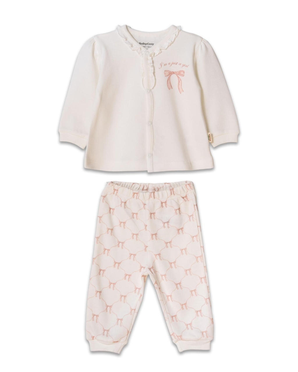 • Set bluză și pantalon, Bow, BabyCosy, 100%bumbac organic, Powder (Marime: 6-9 luni) JEMBC-CSY8158-6