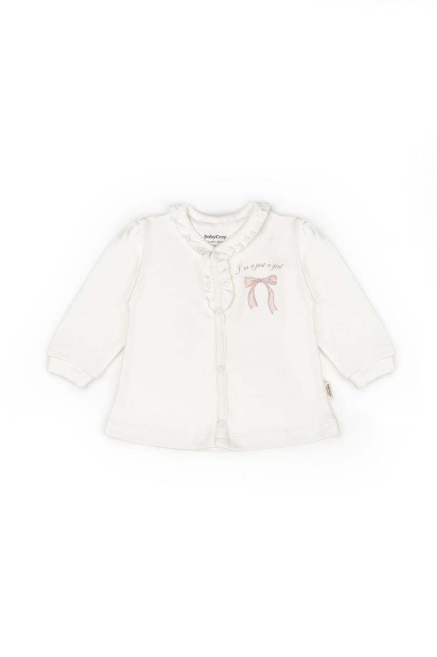 • Bluziță cu capse frontale, guler cu volănaș și imprimeu cu o fundiță