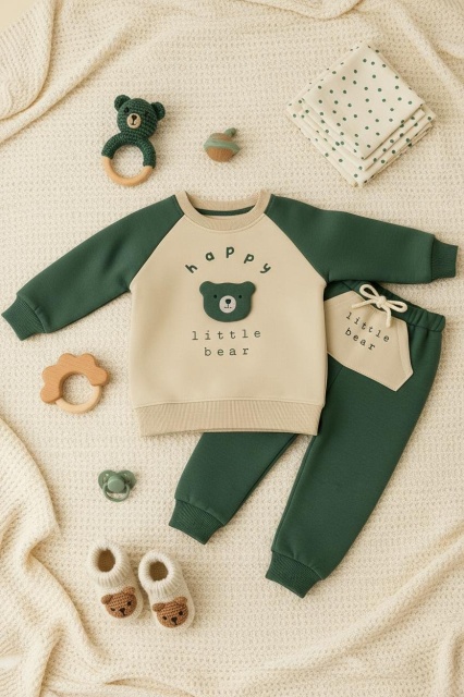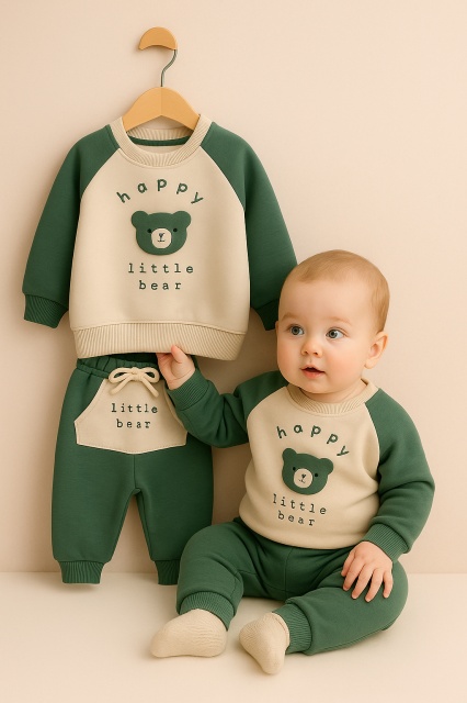 Acest produs Set bluzita si pantaloni bebelus „Happy Little Bear” - Verde este model BBL40