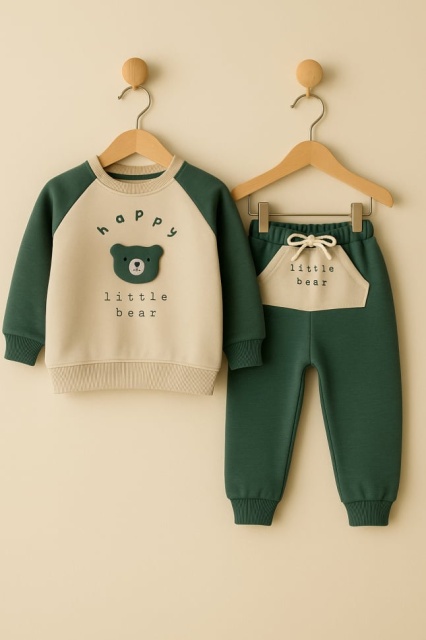 • Set bluzita si pantaloni bebelus „happy little bear” - verde bbl40