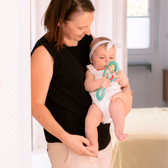 - Vulli a creat aceasta zornaitoare usoara si frumos colorata , cu formele rotunjite pentru a fi simplu de manevrat de catre bebelus.