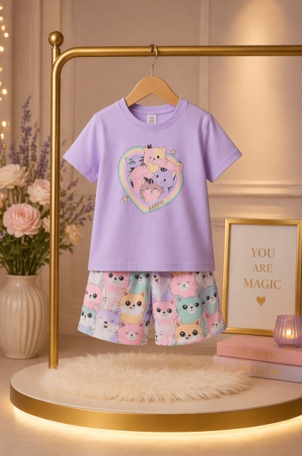 • Set copii 2 piese bumbac imprimeu pisicute bm36046-1