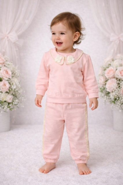 Acest produs Set copii Bymurat roz cu guler decorativ și pantaloni comozi este model BYA10256-1-35