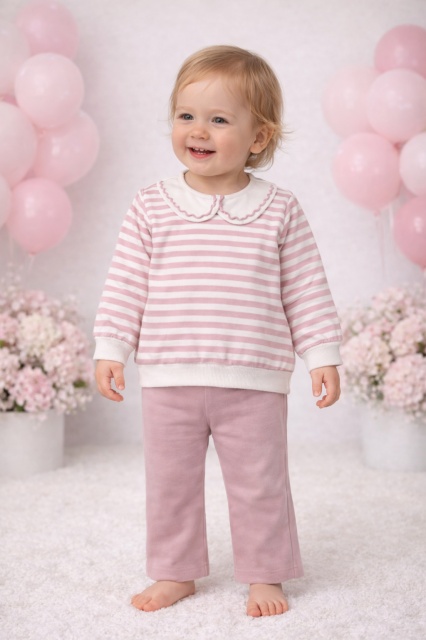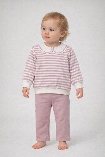 Acest produs Set cu dungi Bymurat cu bluză în dungi și pantaloni bej comozi este model BM10234-1-29