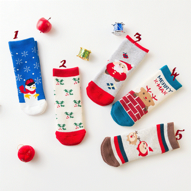 Acest produs SET de 5 perechi de sosetele flausate pentru bebelusi cu imprimeu de Craciun este model MDSKK149-set