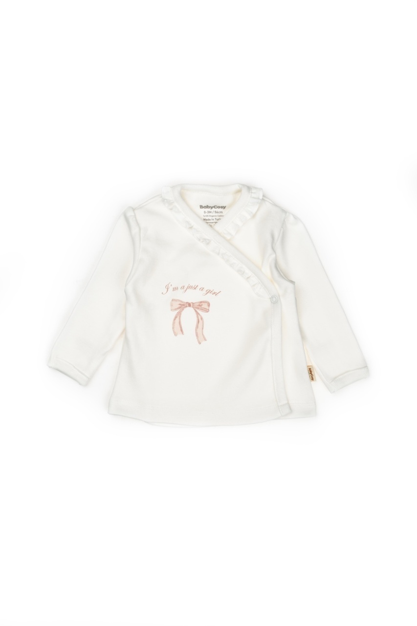 Acest set adorabil pentru nou-născut de la BabyCosy Organic Wear este alegerea perfectă pentru primele luni de viață, oferind confort, protecție și siguranță pentru pielea delicată a bebelușului. Setul conține bluză tip kimono cu capse laterale, pantalonași cu botoșei, bentita cu fundita, mânuși anti-zgâriere și bavetă, toate în nuanțe naturale și decorate cu imprimeuri fine cu oițe.
