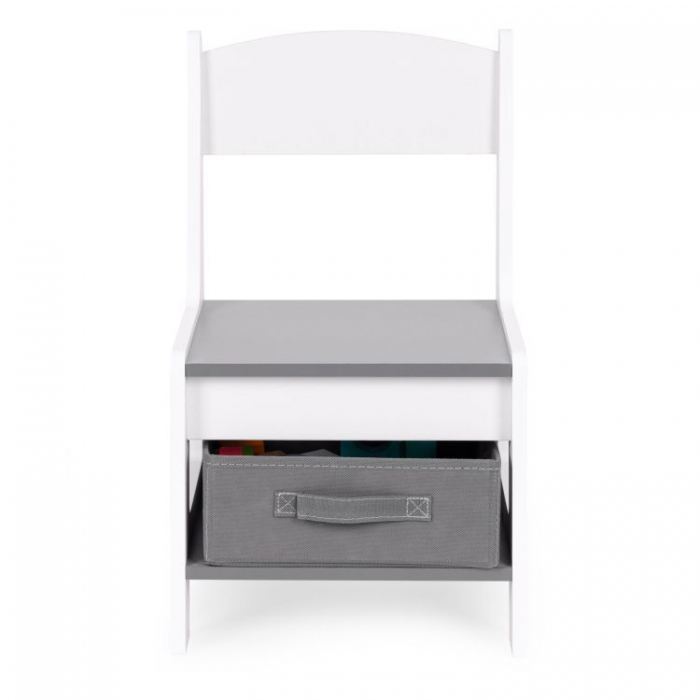 Sub blat exista un spatiu functional pentru depozitarea diverselor obiecte. Sub sezutul scaunelor exista sertare textile spatioase, perfecte pentru depozitarea jucariilor.