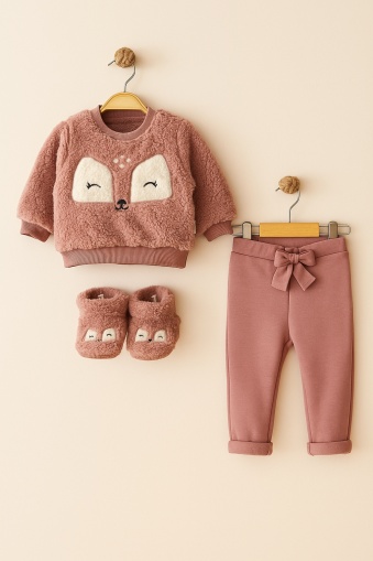 Acest produs Set fetita 3 piese Welsoft – bluzita, pantaloni si ghetute – material pufos este model BBL81