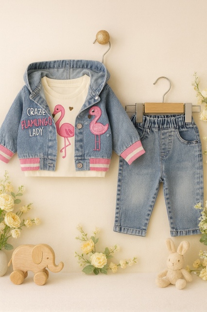 Acest produs Set Fetita Denim Flamingo – 3 Piese Confort & Stil este model TRMD3033
