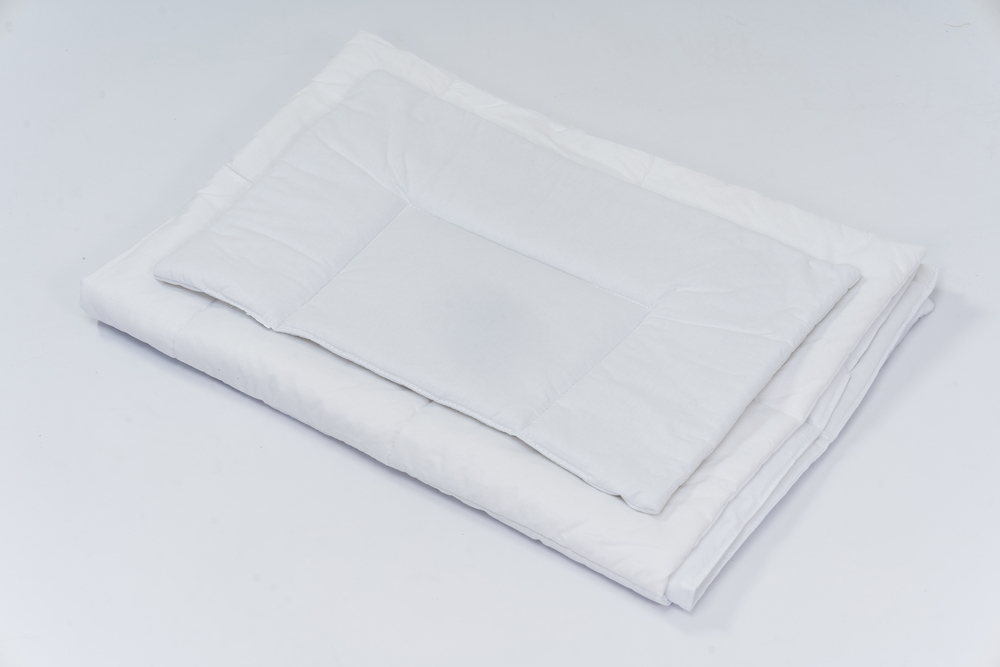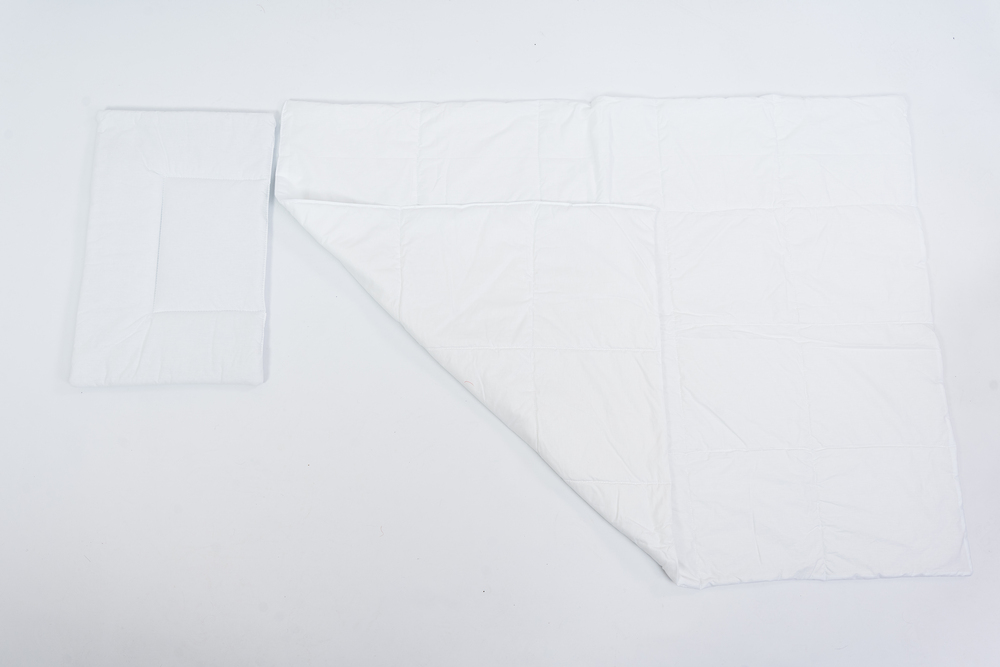 - Set pilota si perna: dimensiuni 100x135 cm (pilota) si 60x40 cm (perna), cu umplutura 25% poliuretan si 75% poliester, huse din bumbac 100%.