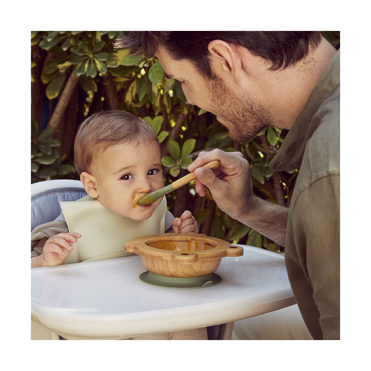 Bolul din lemn Chick este un set de tacâmuri pentru BLW, fabricat din materiale naturale și sustenabile. Setul este format dintr-un bol din lemn de bambus certificat FSC, cu ventuză la bază și o lingurite de lemn cu silicon, astfel încât bebelușii să se poată hrăni singuri. Ventuza de la baza bolului permite fixarea acestuia pe masă, fiind anti-răsturnare și împiedicând răsturnarea bolului în timp ce bebelușul mănâncă.   Ideal pentru inceperea hranirii proprii de catre bebelusi.   Incepand de la 6 luni+   Dimensiuni: bol 15 x 15.3 x 5.1 cm lingurita14.3 x 3.5 x 1 cm