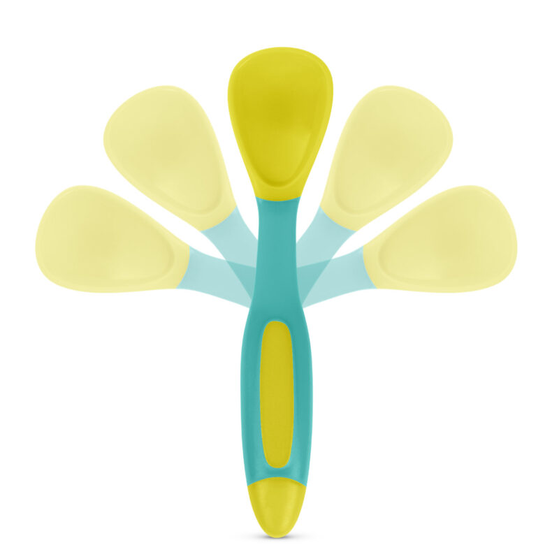 - Vârfuri flexibile-Capetele tacâmurilor se îndoaie până la un unghi de 90°, facilitând bebelușului adunarea și ghidarea alimentelor în gură, dezvoltându-i în același timp încrederea.