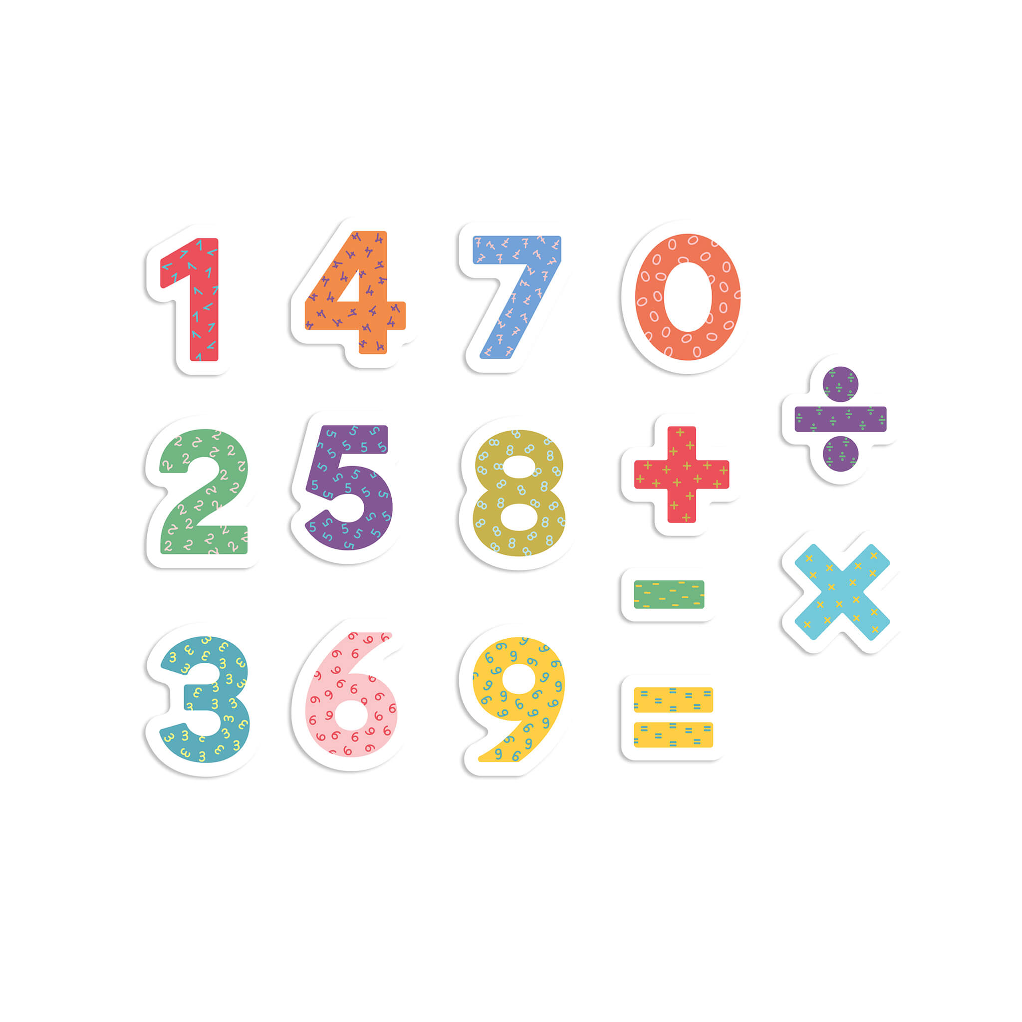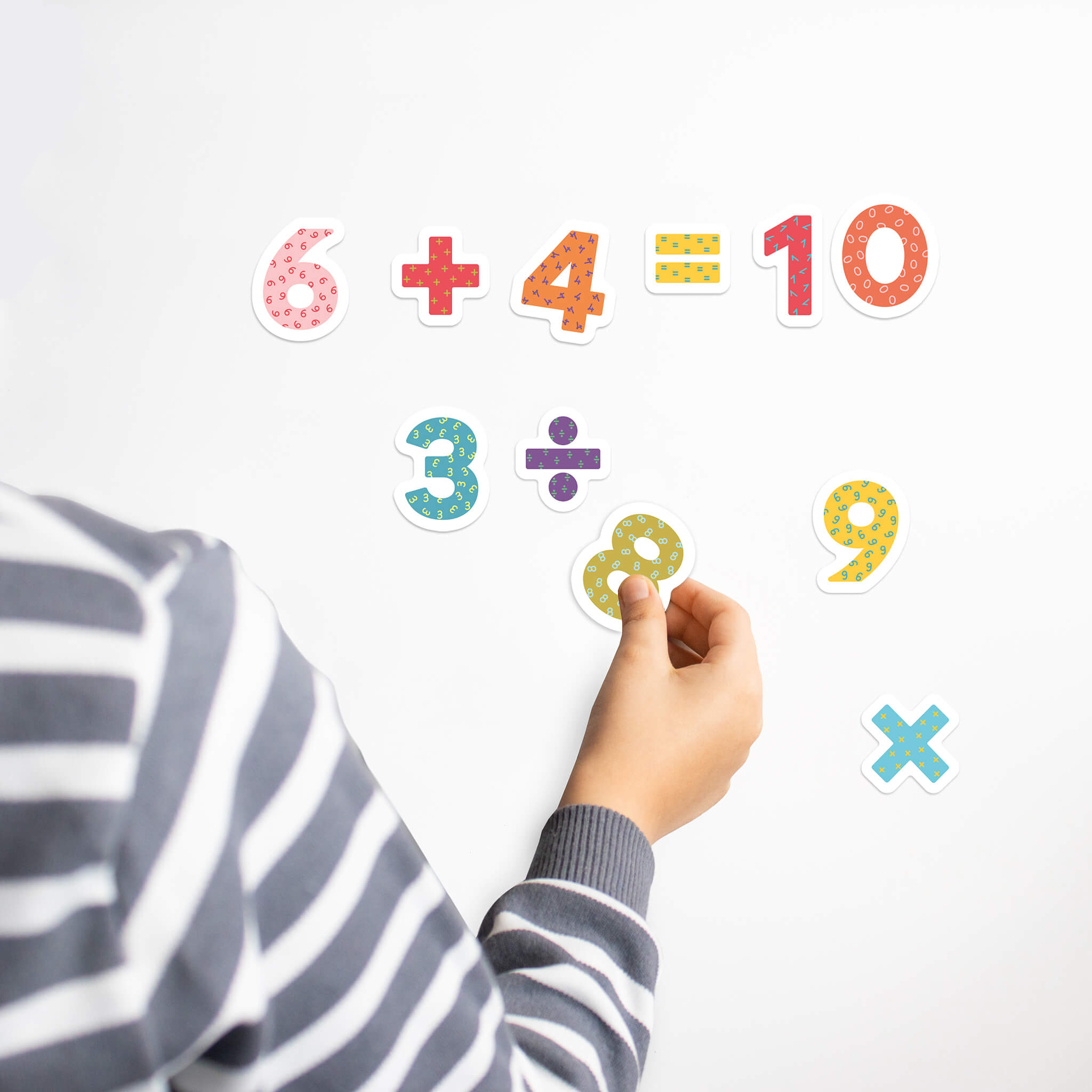 Set magnetic de 30 de numere si simboluri din lemn de inalta calitate, cu suport magnetic. Acestea ii vor ajuta pe cei mici sa se familiarizeze cu numerele si sa efectueze primele operatii matematice. Pot fi folosite pe suprafete metalice, cum ar fi frigiderul, sau pe table albe magnetice.