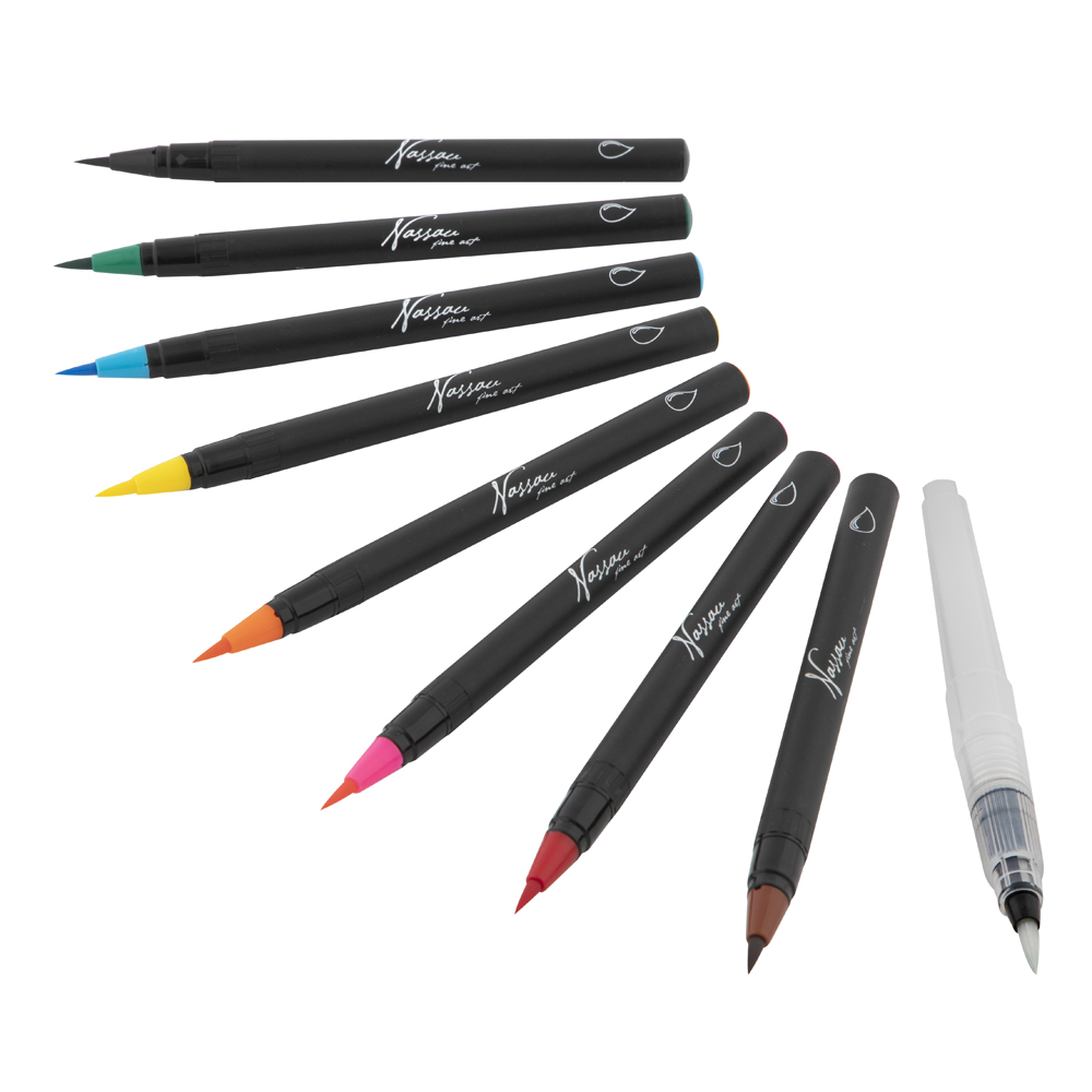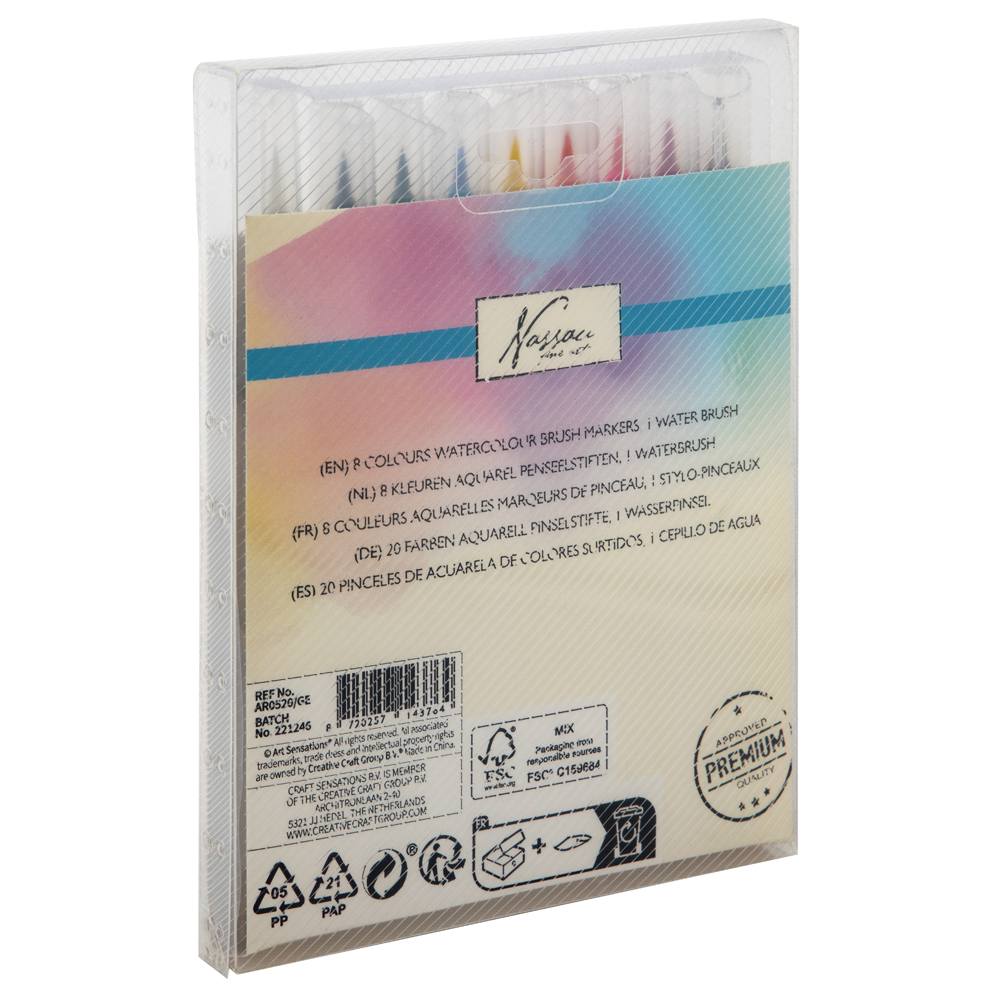 Setul include: 8 markere pentru pensule pentru acuarela, 1x pensula pentru apa