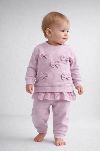 Ultima actualizare a informațiilor de prezentare pentru Set mov 2 piese bymurat cu funde decorative si dantela, costum confortabil pentru fetite bm10148-1-26 a fost efectuată la data de 01.02.2026