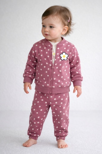 Acest produs Set mov 3 piese My Bella cu hanorac si pantaloni cu buline, tinuta confortabila pentru fetite este model BKM2599333-1-33