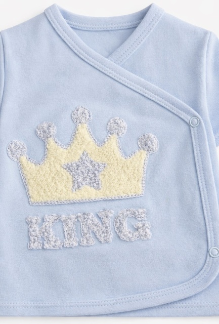 Acest produs Set nou nascut baiat 5 piese albastru bumbac king bluza pantaloni caciulita este model TRPB0199