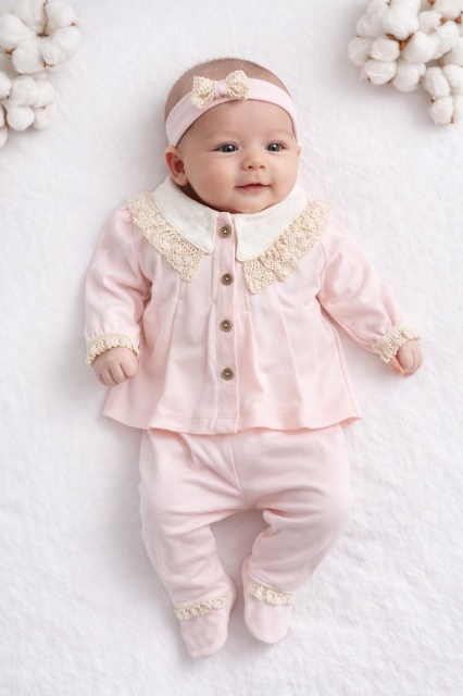 Acest produs Set nou nascut fetita 3 piese roz bumbac elegant bluza cu dantela pantaloni cu botosei este model TRPB0205