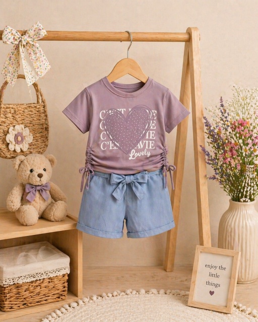Acest produs Set pentru fetite MINAMINOKIDS cu pantaloni scurti denim este model BM26203-1