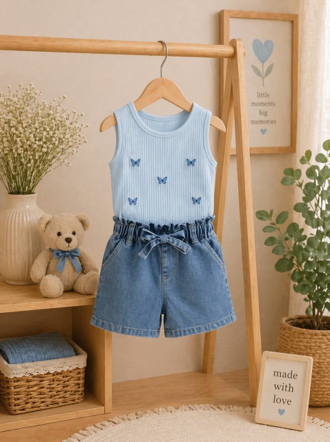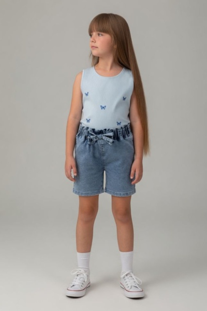 Acest produs Set pentru fetite PAMPALKIDS cu pantaloni scurti denim, fluturasi este model BM6402-1