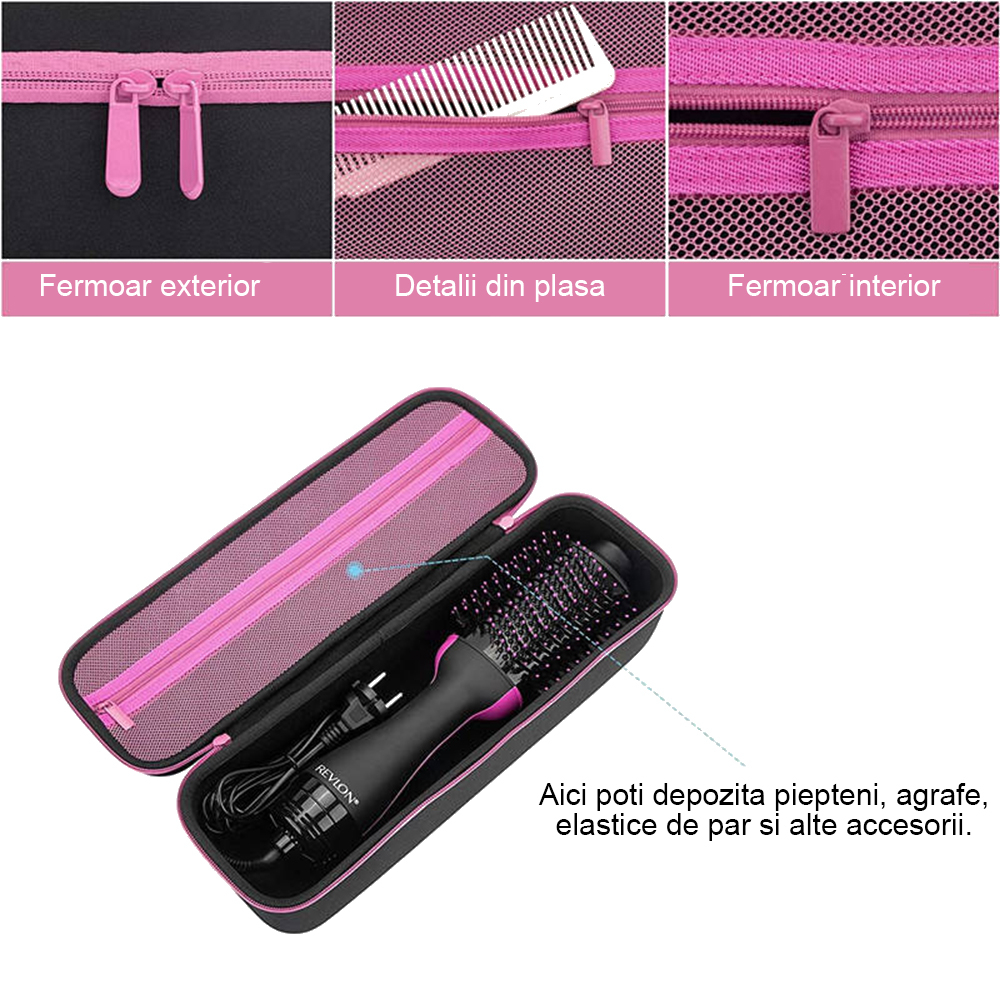 Set perie electrica fixa REVLON One-Step Hair Dryer Volumizer RVDR5222E2 si geanta transport RedLine Case One Cutia periei este deteriorata, insa peria intacta si sigilata! Caracteristici : - Varf rece; - Acoperire de ceramica; - Peri combinati; - Comutator cu 4 pozitii; - Putere 800W; - Tehnologie de ionizare; - Cablu rotativ de 3 m; - Buton Cool - aer usor caldut. Mai putin timp, mai putine deteriorari si mai multa stralucire! Conceputa pentru a distribui aerul uniform si rapid, aceasta perie stilizeaza parul rapid fara a-l deteriora. Forma sa unica se distinge prin marginile usor curbate, perfecte pentru netezirea parului, in timp ce varfurile rotunjite ofera mai mult volum. Astfel, obtineti o coafura minunata intr-un timp foarte scurt. Volum mare doar cu un singur pas Peria electrica Revlon One-Step Hair Dryer Volumizer este proiectata astfel incat sa fie si perie si uscator. Designul inovator va permite sa uscati si sa coafati parul in acelasi timp, ceea ce reduce deterioarea capetelor firelor de par si va ajuta sa economisiti timp. Forma periei, ovala, faciliteaza pieptanarea parului cat mai aproape de radacini. Tehnologie de ionizare Temperaturile ridicate determina parul sa se desparta in toate directiile, fapt ce se datoreaza ionilor pozitivi generati in timpul uscarii. Atunci cand uscam parul cu aer fierbinte podoaba capilara se usuca, acumuleaza usor sarcina pozitiva si se electrizeaza. Fluxul de ioni negativi ajuta la dispersarea picaturilor mici de apa de pe suprafata firului de par, il face mai moale si elimina electricitatea statica. Drept urmare, aceasta perie are functia de ionizare, are un generator de ioni negativi care neutralizeaza incarcarea pozitiva. Ca rezultat, parul ramane hidratat, mai fin si mai sanatos. Acoperire de ceramica Spre deossebire de uscatoarele clasice care au matarialul de acoperire din plastic, acoperirea ceramica a periei asigura distribuirea uniforma a temperaturii aerului in timpul uscarii parului. Invelisul ceramic ajuta la regenerarea firului de par degradat ca urmare a folosirii in exces a produselor pentru coafare. Peri combinati Perii de nailon desurca parul cu usurinta iar perii din par de mistret prind usor parul, il netezesc si ii ofera stralucire. Specificatii tehnice: Tip produs: Perie termica Zona corporala: Par Tip utilizare: Uz casnic; Profesional Utilizare: Par umed Destinat pentru: Uscare Material invelis: Ceramica Functii: Ionizare, Cablu rotativ Tehnologie: Ionica Alimentare: La retea Tensiune alimentare: 240 V Putere: 800 W Trepte de temperatura: 3 Trepte de viteza: 2 Lungime: 32.5 cm Lungime cablu: 2.5 m Greutate: 560 g Culoare: Negru Roz Geanta transport RedLine Case One, pentru periile electrice Revlon One-Step si alte aparate de coafat, cu fermoar si detalii din plasa, maner din tesatura durabila si cauciuc moale Indiferent daca esti un profesionist in domeniul frumusetii sau doar iti place sa iti aranjezi parul acasa, geanta pentru transport RedLine Case One este partenerul perfect pentru a-ti pastra si transporta in siguranta aparatele de coafat preferate. Geanta pentru transport RedLine Case One este construita cu grija dintr-un material ecologic EVA, recunoscut pentru performanta sa excelenta. Acest material este caracterizat de rezistenta sa la apa si umiditate, capacitatea sa de a amortiza socurile si de a absorbi impacturile, izolarea termica puternica si durabilitatea pe termen lung. In plus, captuseala interioara moale asigura o protectie de incredere pentru dispozitivul tau preferat impotriva zgarieturilor, loviturilor si prafului. Caracteristici: - Construita din material ecologic EVA de inalta calitate; - Rezistenta la apa si umiditate, asigurand protectie in orice conditii; - Izolare termica puternica pentru a mentine temperatura optima a dispozitivului tau; - Durabilitate pe termen lung pentru o utilizare indelungata; - Captuseala interioara moale pentru protejarea dispozitivului tau; - Buzunar interior cu fermoar pentru depozitarea comoda a diverselor accesorii, cum ar fi pieptenii, agrafele sau elasticele de par (accesoriile nu sunt incluse); - Maner confectionat din tesatura durabila si cauciuc moale pentru confortul si usurinta utilizarii zilnice si in calatorii; - Dimensiuni exterioare: 38.9 x 12.7 x 9 cm; - Dimensiuni interioare: 37 x 11.5 x 8 cm; - Model tehnic BOX02. Material Ecologic EVA de incredere Aceasta geanta este confectionata din material ecologic EVA, cunoscut pentru performanta sa exceptionala. Acesta nu doar ofera o protectie de neegalat, ci este si prietenos cu mediul inconjurator. EVA este rezistent la apa si umiditate asa ca nu trebuie sa-ti faci griji in timpul calatoriilor. Protectie la inaltime Geanta RedLine Case One este proiectata pentru a asigura o protectie la inaltime pentru dispozitivele tale de coafat. Este capabila sa absoarba socurile si sa previna zgarieturile sau loviturile care pot deteriora aparatele tale pretioase. Captuseala interioara moale Captuseala interioara moale si delicata protejeaza cu grija dispozitivul tau de orice posibile daune, asigurandu-se ca este intotdeauna in stare perfecta de functionare. Buzunar interior versatil Cu buzunarul interior prevazut cu fermoar, poti depozita cu usurinta diverse accesorii esentiale pentru coafat. Piepteni, agrafe, elastice de par, toate au un loc bine stabilit in interiorul gentii pentru a-ti simplifica rutina de ingrijire a parului (accesoriile nu sunt incluse in pachet). Maner durabil si confortabil Manerul din tesatura durabila si cauciuc moale nu doar adauga un plus de durabilitate gentii, dar si asigura confort in timpul transportului zilnic sau in timpul calatoriilor. Compatibilitate excelenta Geanta pentru transport RedLine Case One este dedicata periilor electrice de par Revlon si se potriveste perfect pentru urmatoarele modele: - Revlon One-Step Hair Dryer Volumiser, - Revlon One-Step Volumiser PLUS, - Revlon One-Step Blow-Dry Multi Styler, - Revlon Special Edition One-Step Volumiser Titanium, - Revlon One-Step