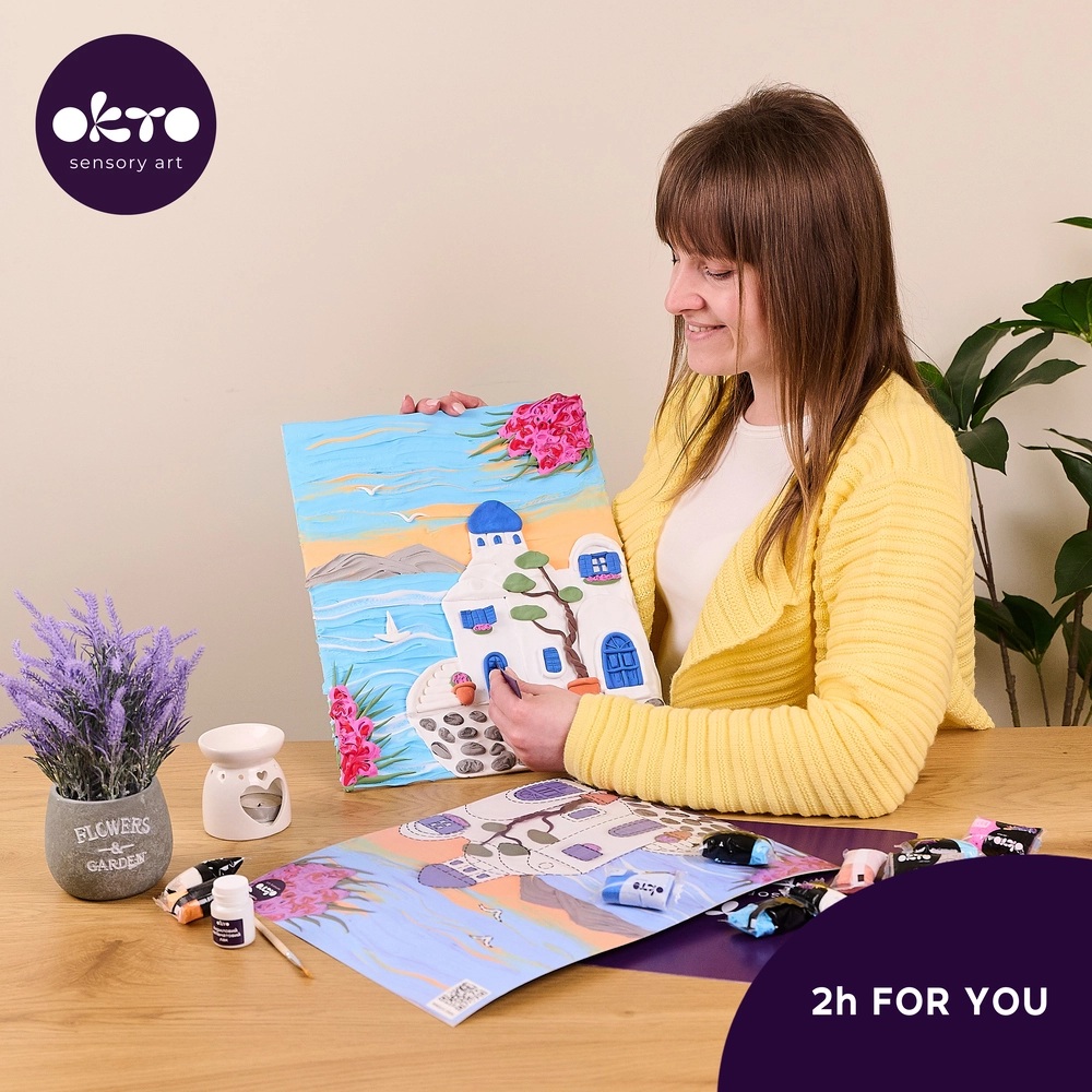 Am creat o argila speciala care nu se lipeste si nu lasa urme pe maini, este usor de modelat si aplicat, culorile imbinandu-se armonios.