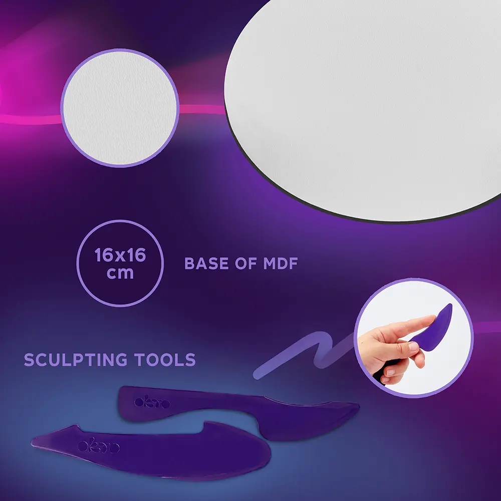 Setul reprezinta o optiune grozava de cadou pentru cei dragi. Textura matasoasa a argilei ajuta la crearea cu usurinta a modelelor, isi pastreaza forma, se usuca rapid si nu isi pierde din luminozitate.