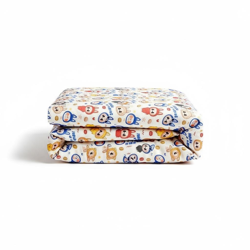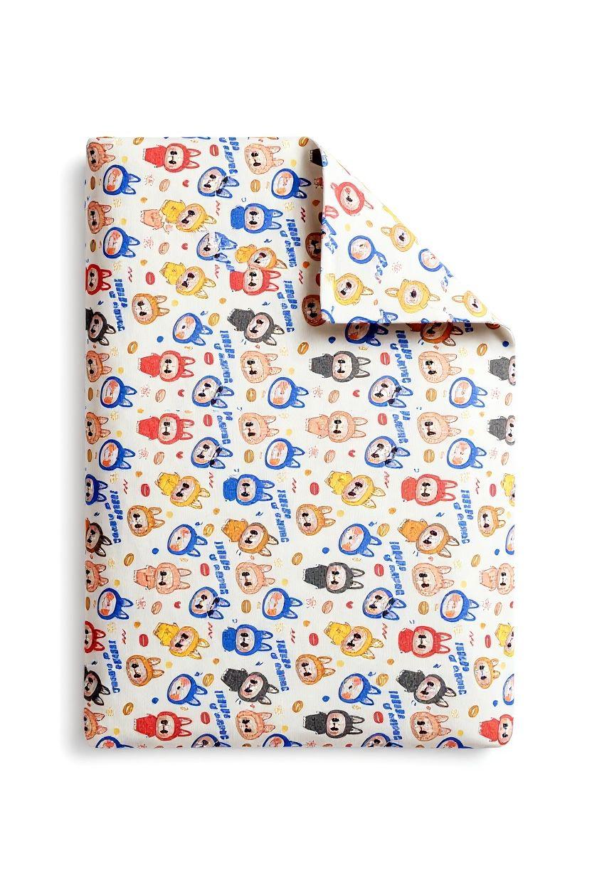 - Invelis exterior 100% bumbac ranforce, lavabil la 30 grade, culoare multicolora pe fundal alb, imprimeu Labubu