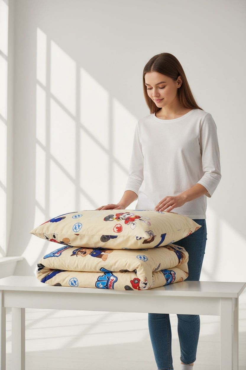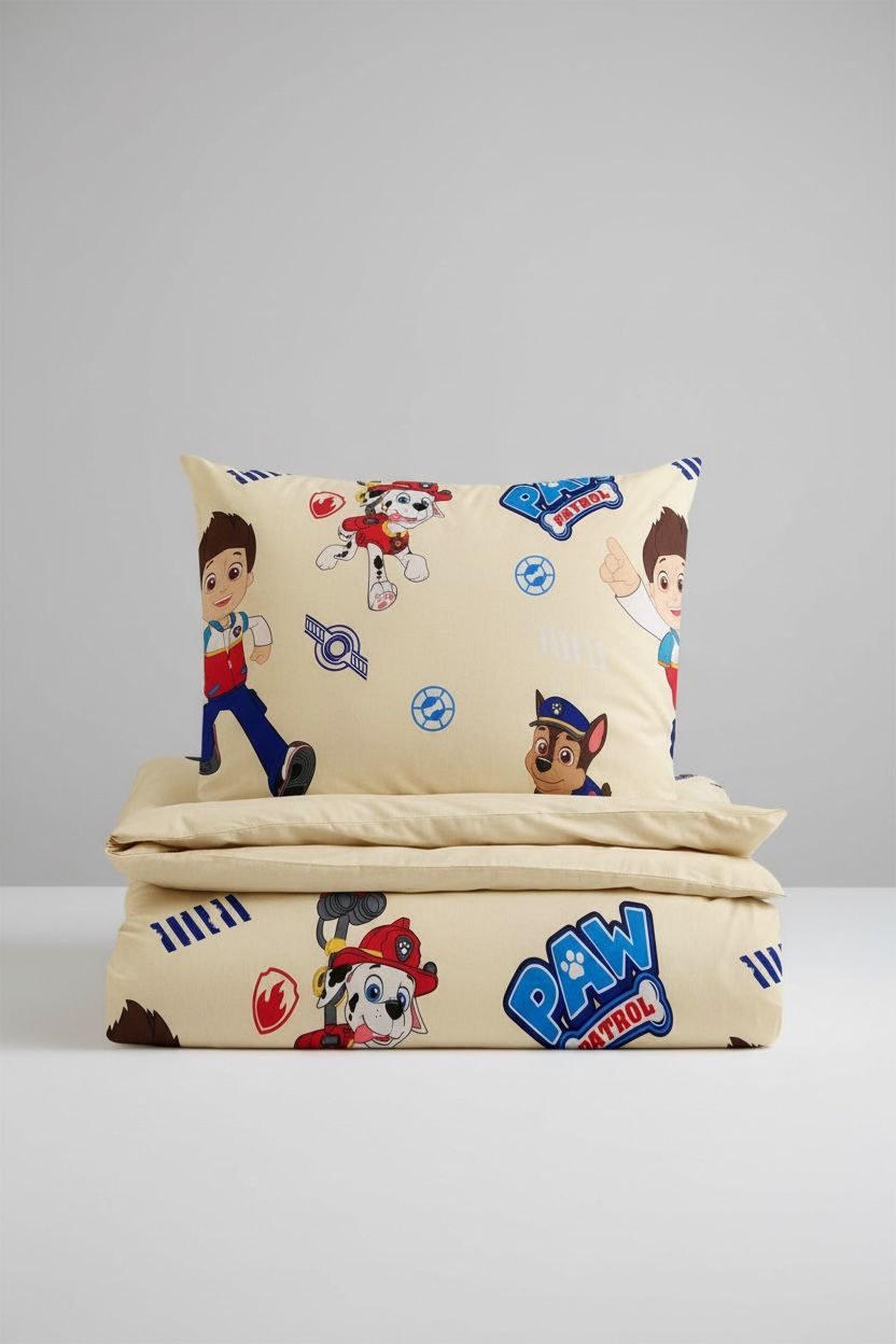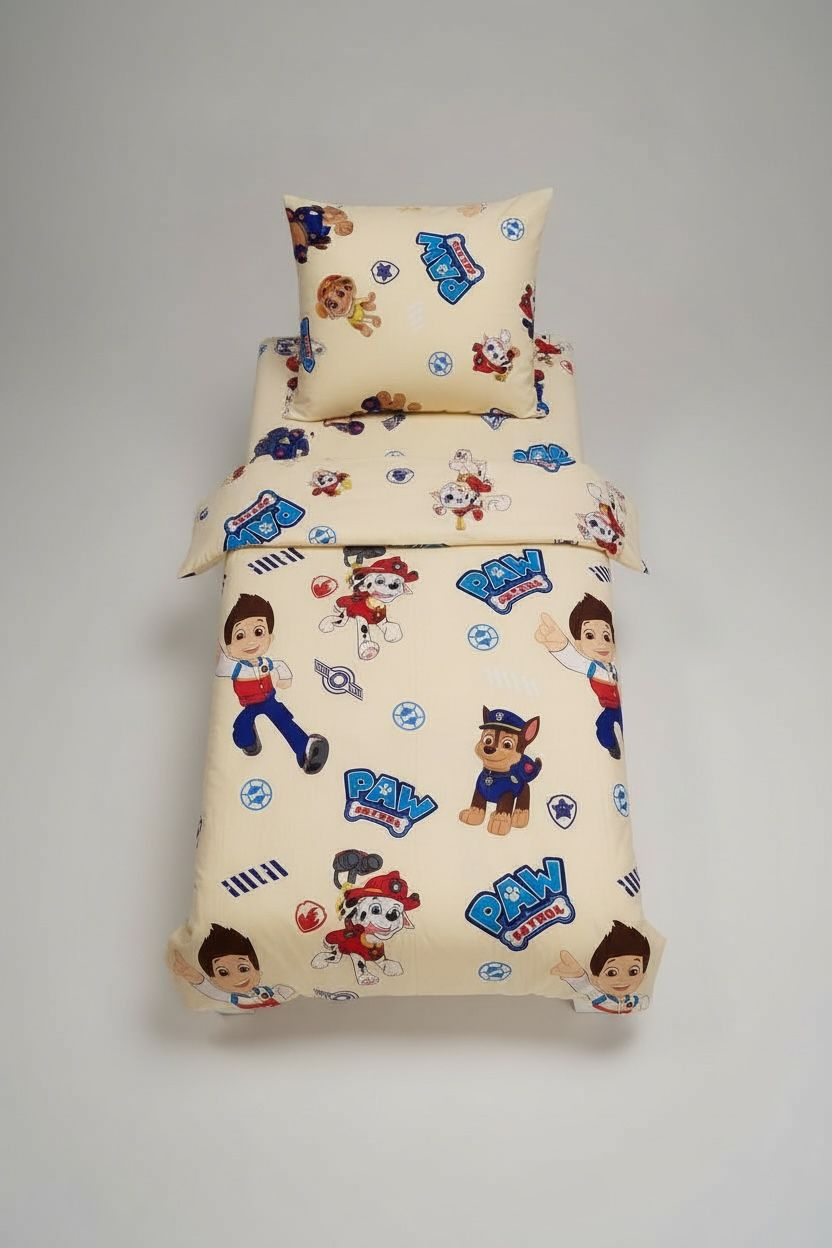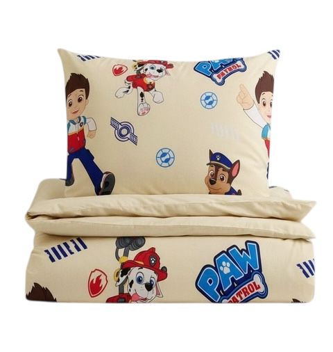 Set de pilota si perna Standard din bumbac ranforce imprimeu cu Paw Patrol Crem pentru pat 2-8 / 2-12 ani (140x70 cm si 160x80 cm).