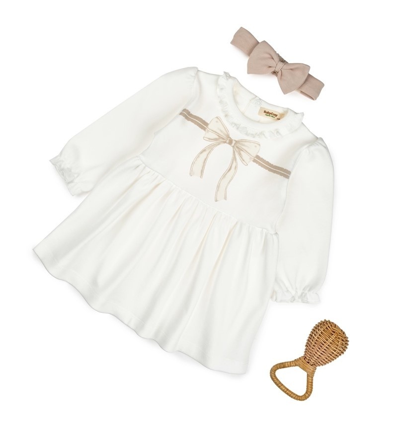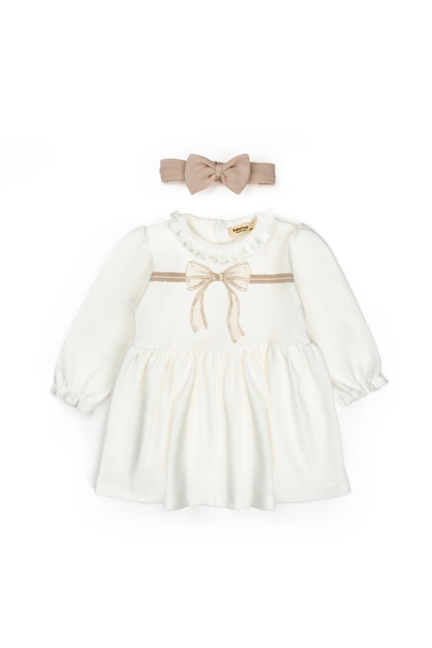 • Set rochita cu bentita, Bow, BabyCosy, 100%bumbac organic, Stone (Marime: 9-12 luni) JEMBC-CSY8161-9