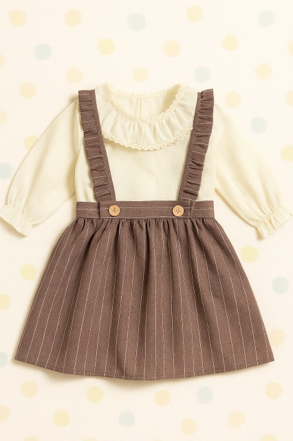 • Set rochita sarafan fetite cu bluza, crem si maro bbl49