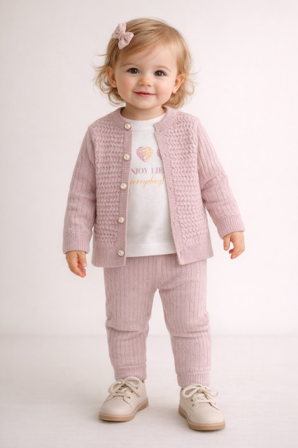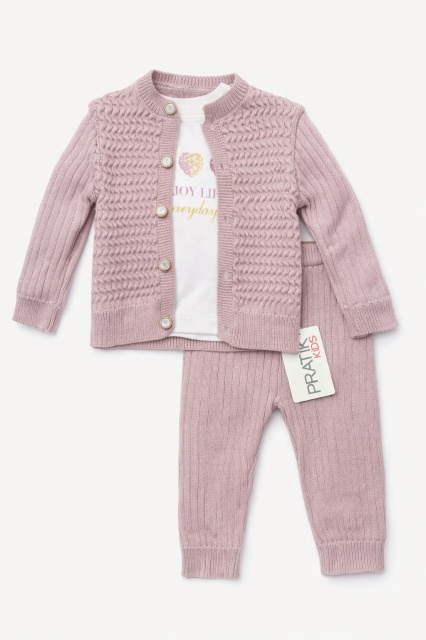Acest produs Set roz pudra tricotat 3 Piese, Cardigan + Bluza + Pantaloni este model TRPB0008