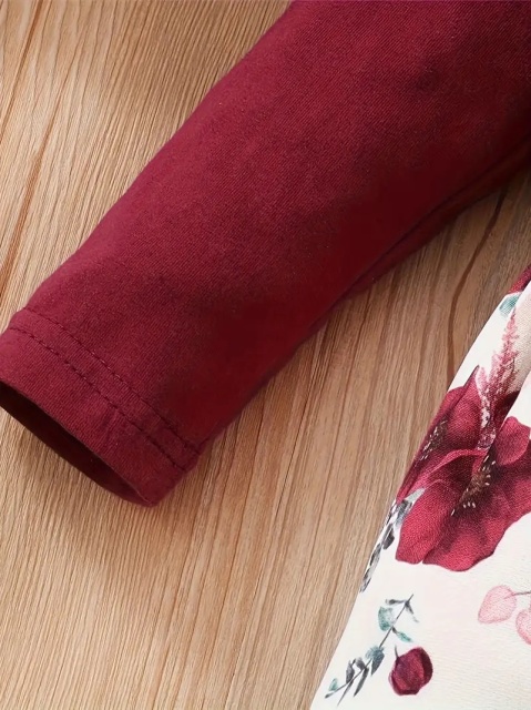 Setul este format dintr-un body visiniu cu maneci lungi si volanase delicate pe umeri, decorat cu nasturi eleganti in zona pieptului, oferind un aer sofisticat si rafinat. Materialul moale si placut la atingere asigura confort pe tot parcursul zilei.