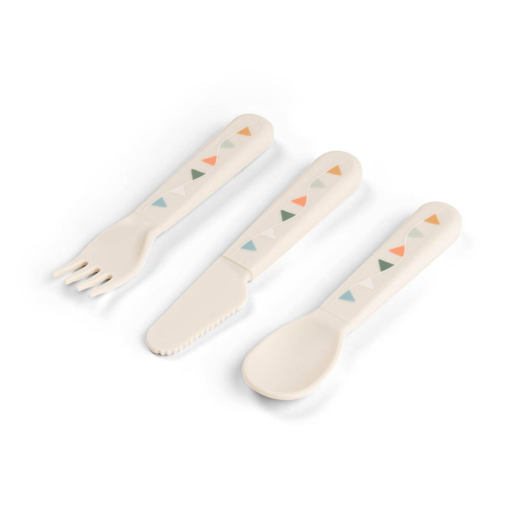 'Setul este realizat din PP alimentar 100%, un material durabil si potrivit pentru contactul cu alimentele. Finisajul in nuanta Sand si motivul Celebration ofera produsului un aspect cald si jucaus, usor de integrat in gama de accesorii pentru masa a copilului. Set tacamuri Done by Deer Celebration Sand combina utilitatea practica cu un design bine echilibrat pentru uz frecvent.