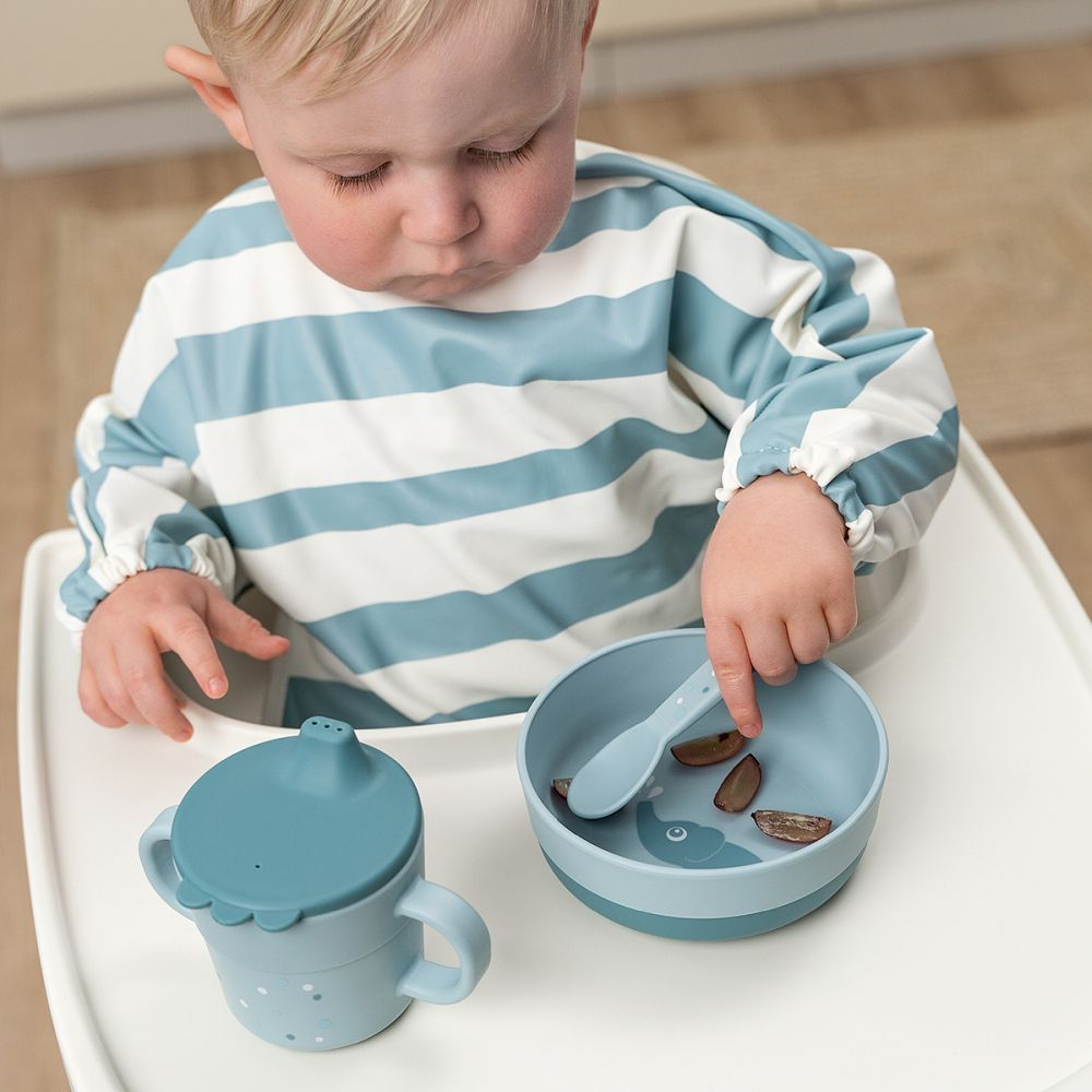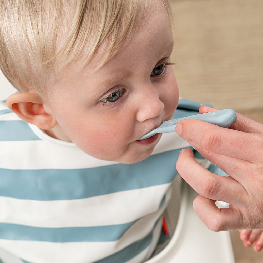 Daca vrei tacamuri confortabile, sigure si atragatoare, Set tacamuri Foodie Done by Deer Happy Dots Blue este alegerea potrivita pentru primele mese independente.