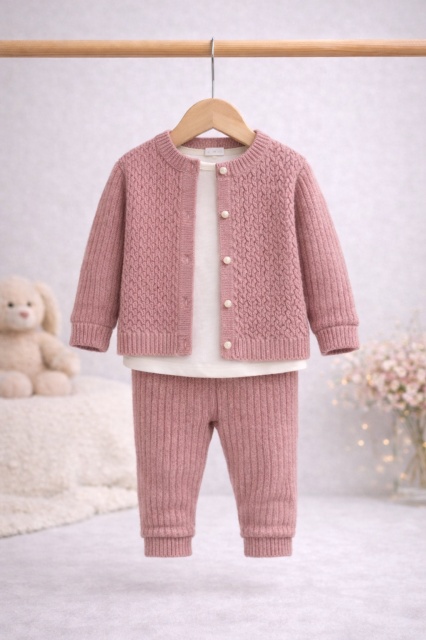 Acest produs Set Tricot 3 Piese Bigimay - Roz pudrat este model BM1535-1