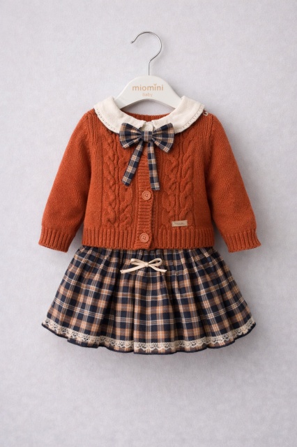 Acest produs Set tricotat fetite Missolix cu vesta si fusta in carouri, design elegant si confort premium este model BKR2623-1