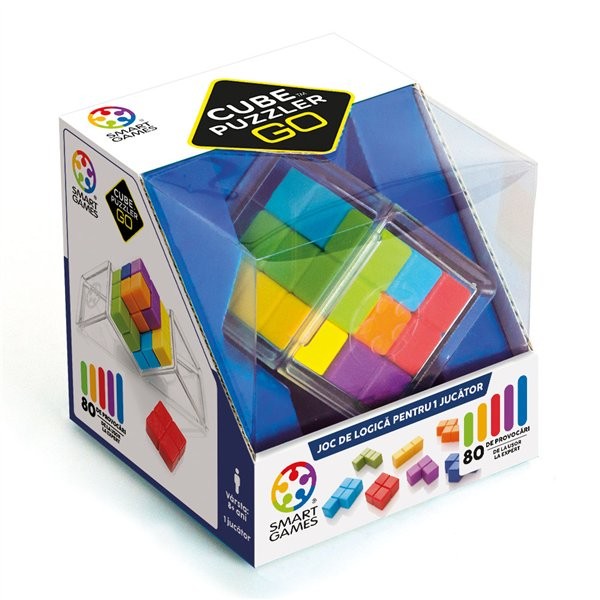 Cube Puzzler Go este un joc logic din seria Smart Games, realizat din materiale de inalta calitate, gandit pentru provocari rapide si inteligente, oriunde te-ai afla. Include 80 de provocari logice cu dificultati crescatoare, recomandat pentru varstele 8+. Este un puzzle 3D captivant care iti testeaza gandirea spatiala: pe masura ce urmezi indiciile, vei incerca sa completezi cubul folosind piesele colorate. Cutia transparenta din plastic are un rol important in joc, deoarece prin extindere devine tabla de joc, perfecta pentru calatorii si joaca in deplasare. Continut set ✔ 7 piese de puzzle colorate