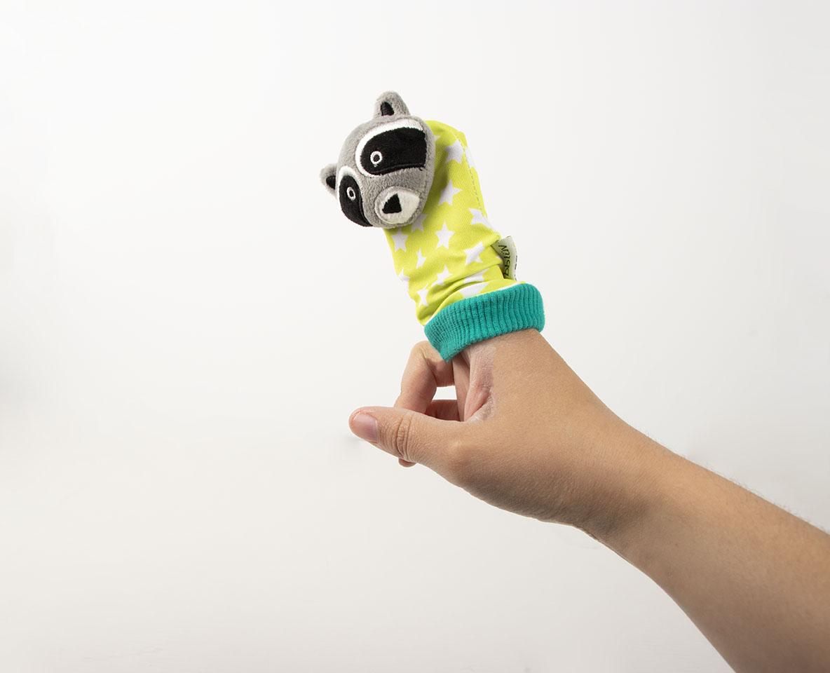 Imbraca copilul cu Sosete jucarii Arici si Raton bblüv Düo si pozitioneaza personajele pe deget. Spala sosetele la masina la 30 '°C separat de jucarii.