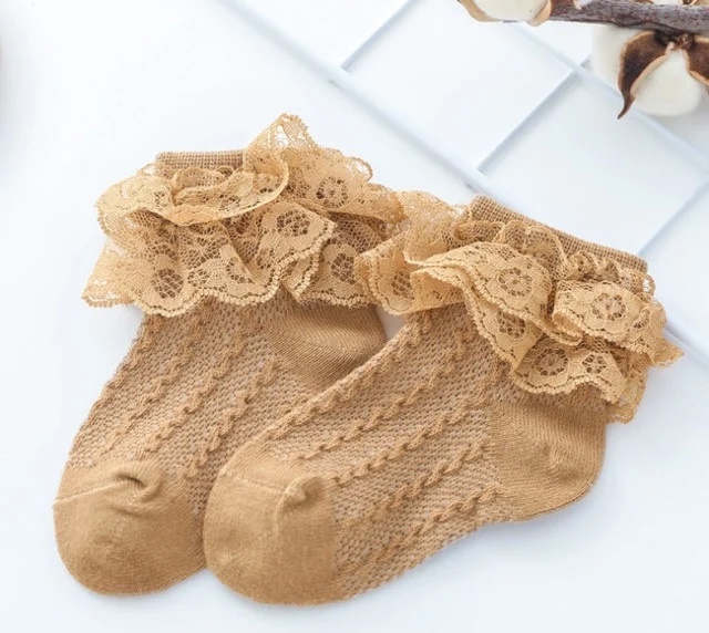 • Sosetele maro cu model din tesatura si danteluta mbskk121-2