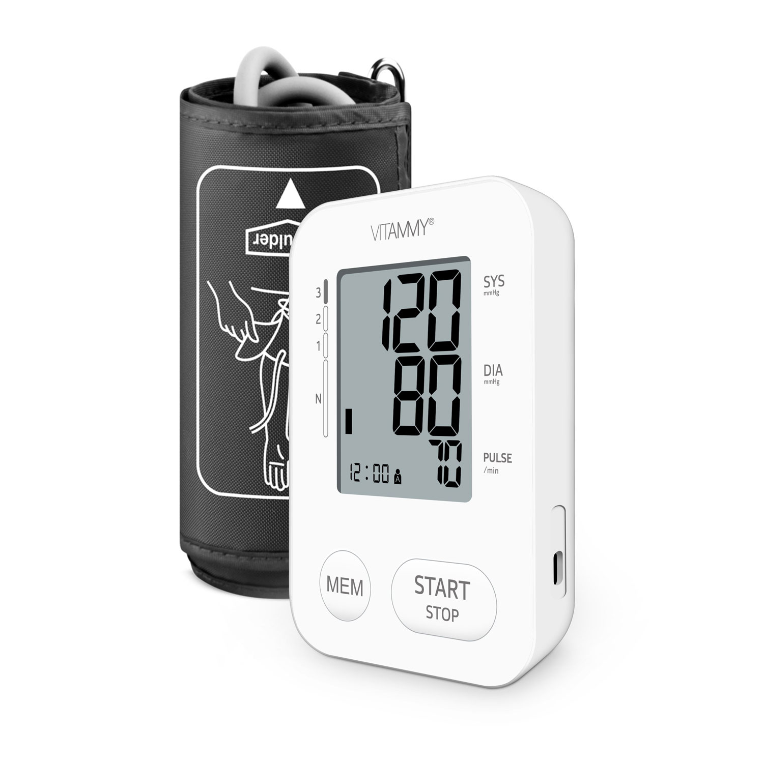 Tensiometru electronic de brat VITAMMY Next 2, mufa USB, detectare aritmie Cracteristici: - Precizie ridicata; - Ecran LCD cu afiaj mare; - Detectarea aritmiei; - Memorie 2 x 120 seturi; - Memorare pentru 2 utilizatori; - Afisarea mediei ultimelor 3 masuratori; - Detectarea miscarii bratului; - Alimentare practica USB; - 3 x baterii AA;. - Dimensiunea ecranului: 66 Ãmdash; 49 mm; - Dimensiune manseta 22 - 40 cm. 2 DIN SERIA NEXT Tensiometrul face parte din seria NEXT , cea mai noua generatie de tensiometre. Tensiometrul Vitammy Next 2 utilizeaza metoda oscilometrica de masurare a tensiunii arteriale si a pulsului. Dispozitivul masoara tensiunea arteriala extrem de usor, rapid si precis, datorita tehnologiei de masurare in timpul pomparii. Astfel, utilizatorul simte mai putina presiune si se simte mult mai confortabil in timpul procesului de masurare. DETECTAREA ARITMIEI Dispozitivul dispune de sistem pentru detectarea pulsului neregulat si a tulburarilor de ritm cardiac (aritmii) si emite avertizare pentru tensiune arteriala crescuta. Ecranul LCD al tensiometrului afiseaza atat valoarea tensiunii cat si rata pulsului in mod simultan. MEMORARE PENTRU 2 UTILIZATORI Dispozitivul poate salva masurarile pentru doua persoane diferite, pentru fiecare utilizator cate 120 de seturi. De asemenea, calculeaza si afiseaza media ultimelor 3 masurari. MANSETA CONFORTABILA Selectarea marimii mansetei este un factor important ce poate afecta fiabilitatea masuratorii. De aceea este esential sa alegeti marimea corespunzatoare. Dimensiunea mansetei 22-40 cm este pefecta pentru majoritatea utilizatorilor. ALIMENTARE USB Dispozitivul are o mufa prin care aveti posibilitatea sa-l conectati cu ajutorul unui incarcator ce are un conector micro USB. Datorita acestei posibilitati de alimentare, economisiti bani si actionati ecologic. Pachetul nu include incarcatorul si cablul USB. HUSA PRACTICA Pachetul include o husa moale si confortabila pentru o depozitare mai usoara si o protectie suplimentara. SPECIFICATII Metoda de masurare: Oscilometrica Interval de masurare: 0 - 280 mmHg (tensiune arteriala), 40 - 170 batai minut (puls) Precizie de masurare: 3 mmHg tensiune; 5% valoarea pulsului Circumferinta manseta: 22 - 40 cm Umflare: Automata Dezumflare: Automata Memorie: 2 x 120 valori Temperatura si umiditatea de functionare: 5 C 40 C; 15 - 93 % Temperatura si umiditatea de depozitare: -25 C 70 C; , 93 % Alimentare: 3 x AA, 5V DC Dimensiuni: 12.6 Ãmdash; 8.5 Ãmdash; 2.8 cm Greutate: 157 g (fara baterii si manseta),12.6 × 8.5 × 2.8 cm