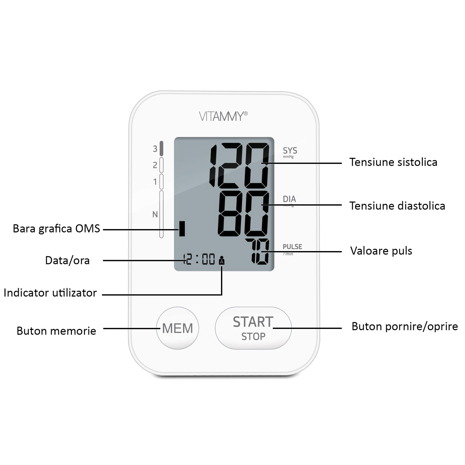 Ultima actualizare a informațiilor de prezentare pentru Tensiometru electronic de brat VITAMMY Next 2, mufa USB, detectare aritmie, memorare 2 utilizatori, Alb BITnext2 a fost efectuată la data de 23.04.2026