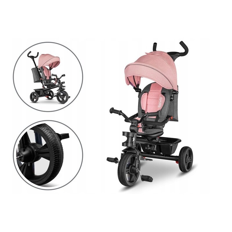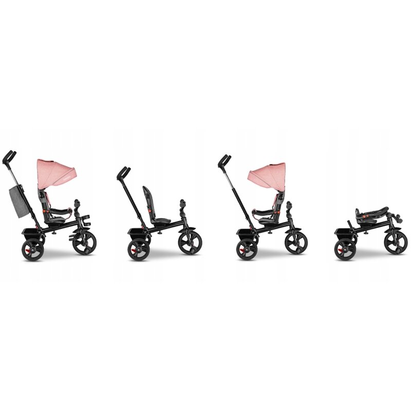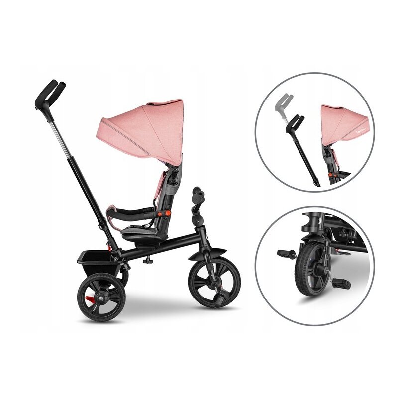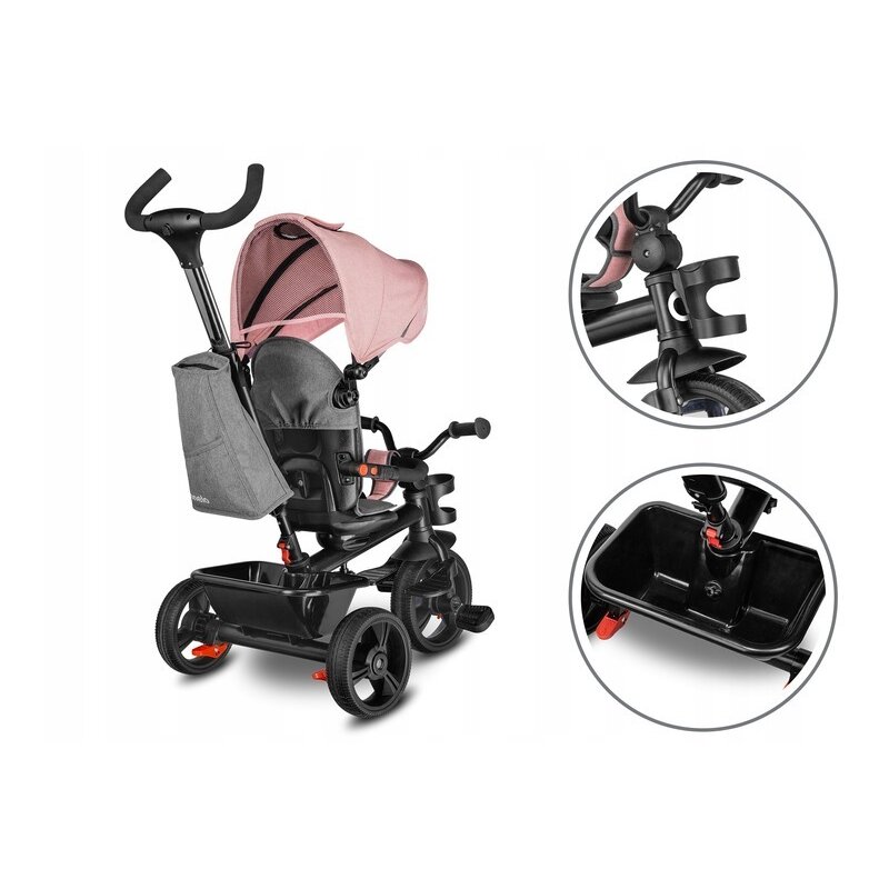 Tricicleta Haari se adapteaza cu usurinta la nevoile si varsta copilului, oferind o experienta placuta atat pentru cei mici, cat si pentru parinti. Scaunul rotativ permite orientarea copilului fie spre inainte, fie spre spate, oferind flexibilitate in utilizare. Initial, poate fi folosita ca un carucior confortabil, iar pe masura ce copilul creste si ajunge la pedale, se transforma intr-o tricicleta complet functionala, incurajand independenta.