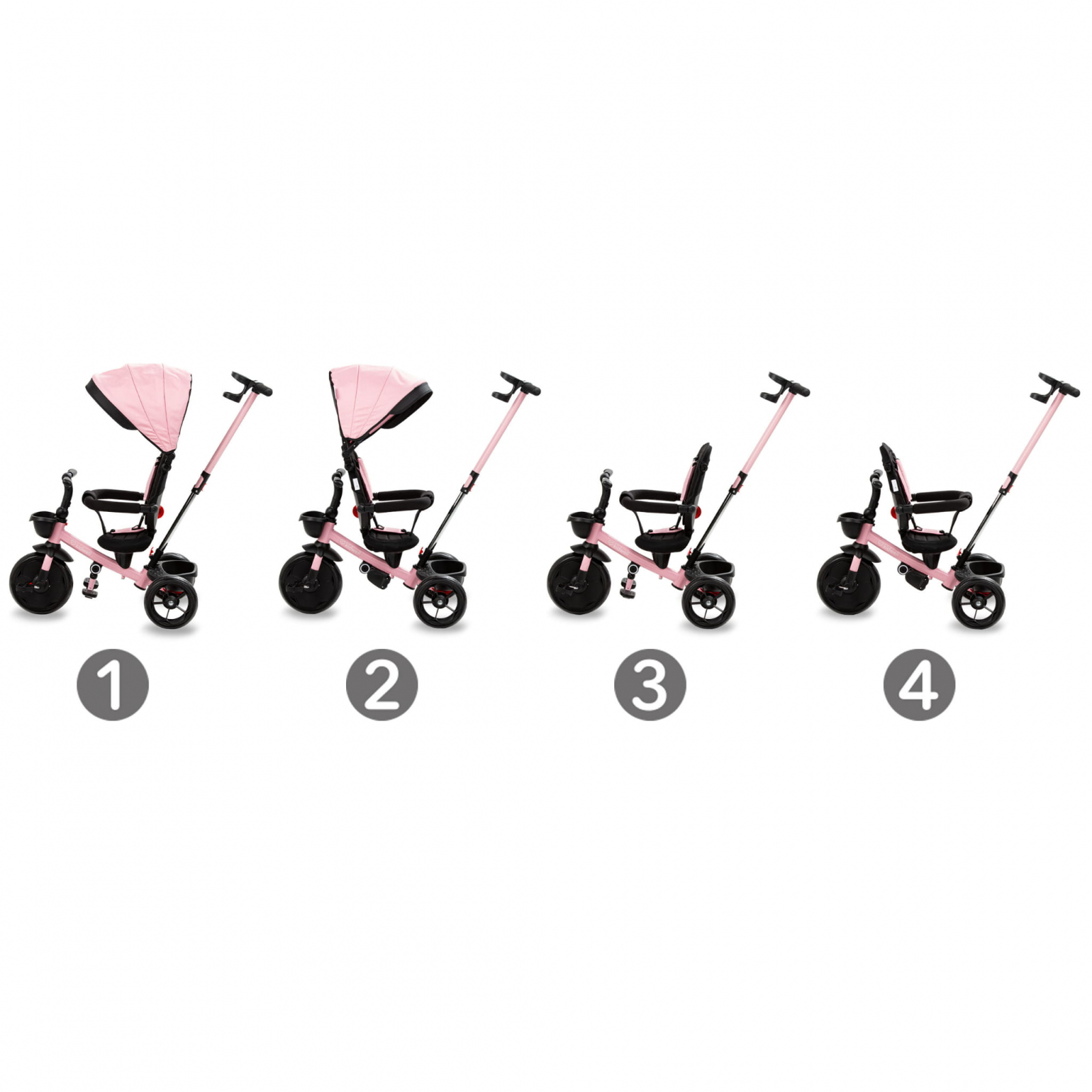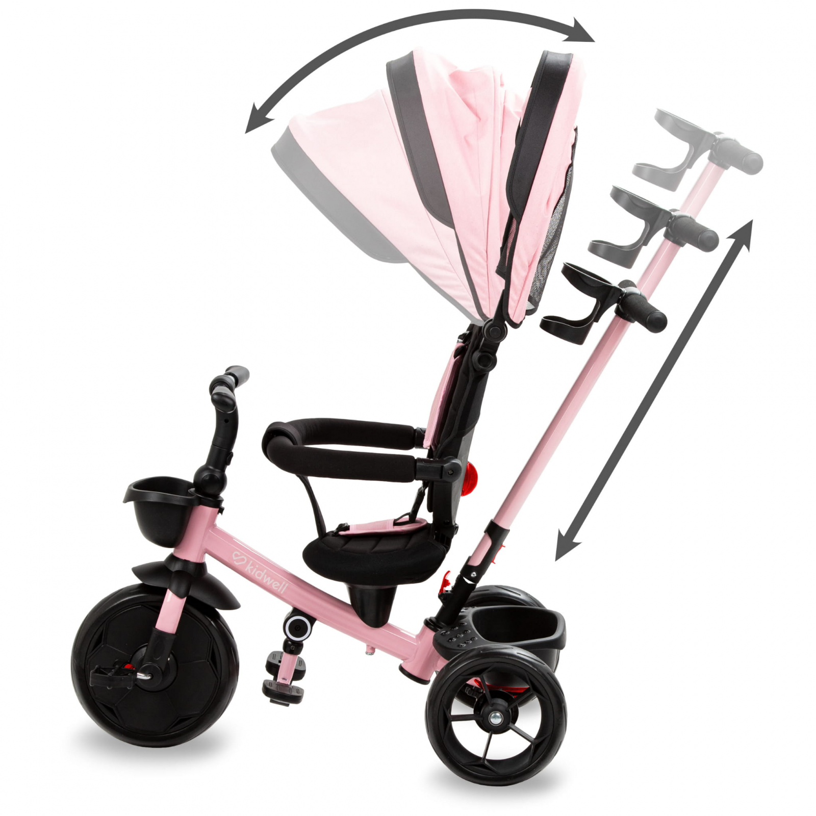 • Tricicleta Pentru Copii Kidwell Axel Gri Cu Sezut Rotativ, Roti Din Spuma Eva, Suport Pentru Picioare, Control Parental, Suport Pentru Pahar, Centura De Siguranta, Greutate Admisa 25 Kg, Roz Pjbrotraxe01a0