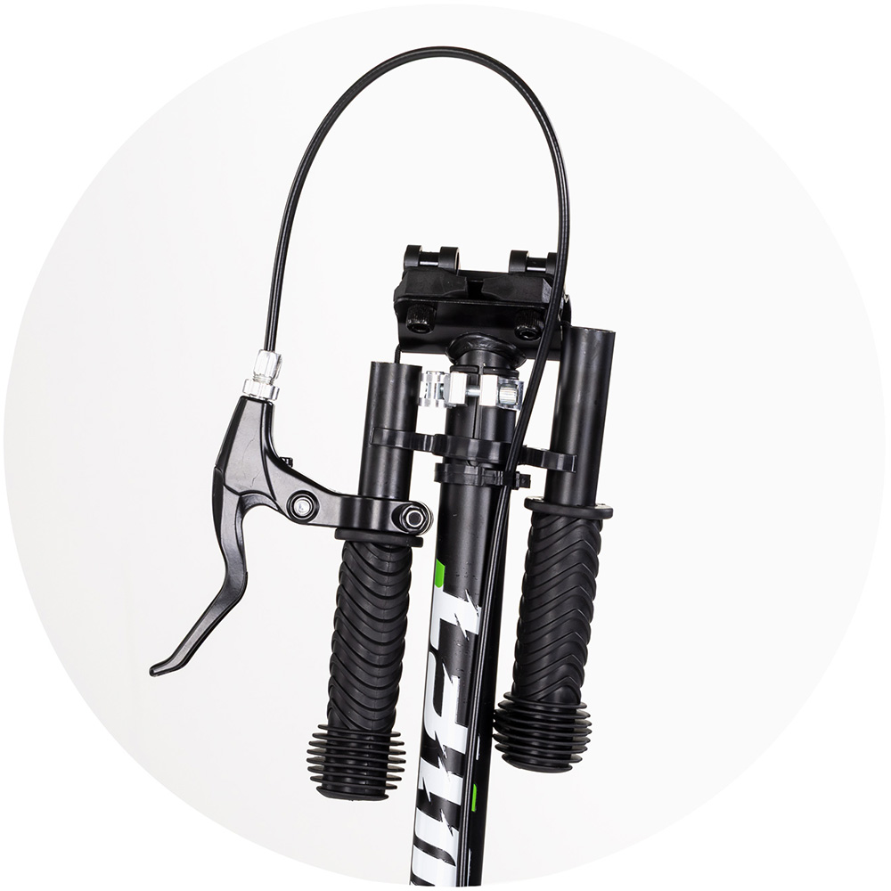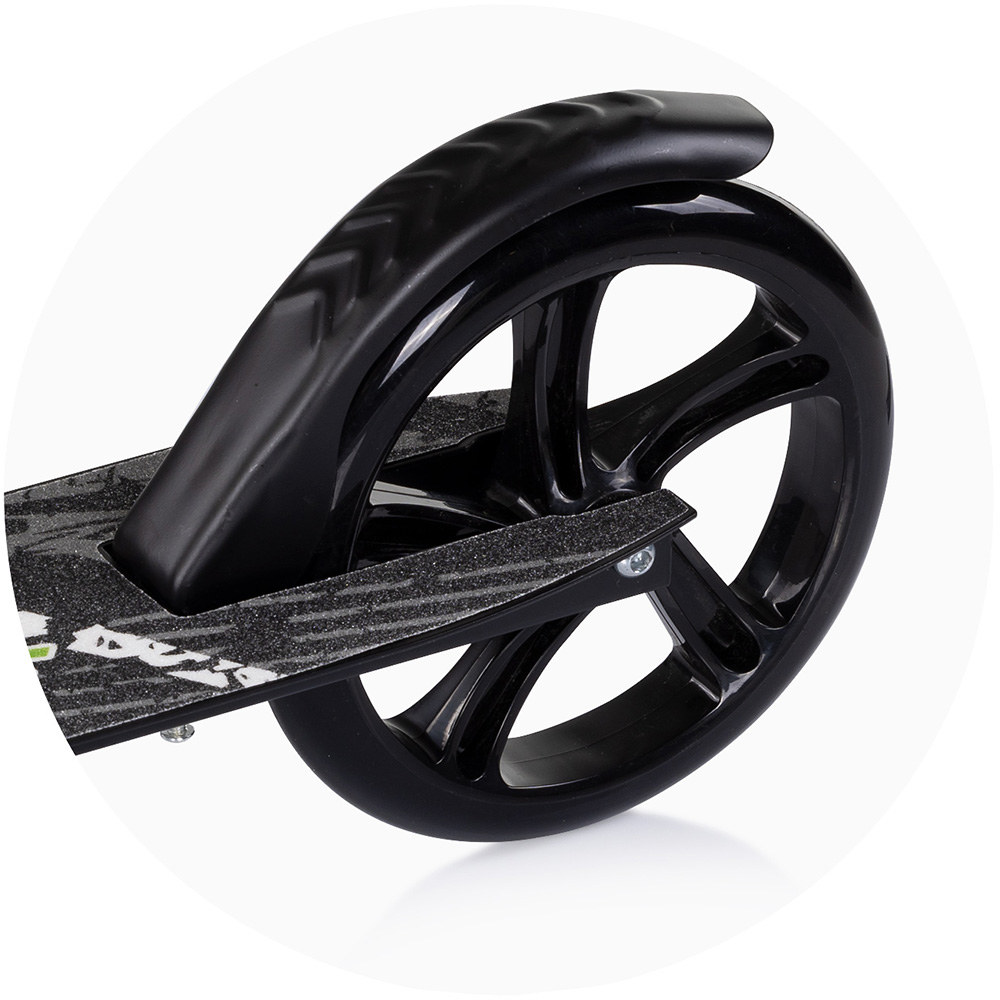 - Roata din spate dotata cu aparatoare de noroi cu functie de franare