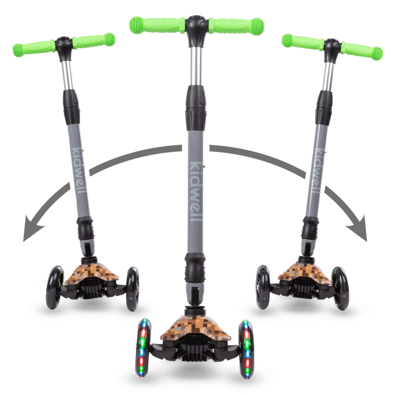 Conceput avand in minte copiii si cu atentie la fiecare detaliu. Deplasarea pe ea este lina si sigura, iar invatarea calariei este usoara si placuta. Trotineta VENTO cu trei roti este perfect echilibrata, stabila si va deveni cu siguranta tovarasul de joaca al copilului dumneavoastra. Rotile iluminate cu LED-uri si designul interesant vor incanta fiecare mic utilizator. Design durabil si usor, cu o greutate de doar 2,7 kg Ecartamentul larg al rotilor din fata faciliteaza mentinerea echilibrului Rotile silentioase si durabile ofera o aderenta foarte buna la sol LED-uri incorporate in roti , care lumineaza in timpul mersului Suspensie fata cu punte de directie dinamica Sistem de pliere rapida Ghidon din aluminiu cu reglare a inaltimii in 3 trepte Unghiul de directie limitat minimizeaza schimbarile de directie necontrolate Manere ergonomice pentru ghidon Platforma antiderapanta Frana pe puntea spate Rulmenti ABEC-7 durabili Ambalaj colorat , trotineta este perfecta pentru un cadou Dupa despachetare, trotineta este gata de utilizare, nu necesita asamblare. Design unic Sarcina maxima a trotinetei - 50 kg Conceput pentru copii cu inaltimea cuprinsa intre 90 si 130 cm Reglarea ghidonului 66 - 76 cm Interval de varsta 3+ Trotineta a fost proiectata, fabricata si certificata in conformitate cu cerintele Uniunii Europene (standardul de siguranta EN 71) SPECIFICATII: Marca: , Kidwell Model:, VENTO Materiale:, Ghidon din aluminiu, platforma din plastic, roti din poliuretan cu diode LED Greutate produs: , 2,7 kg Roti:, diametru fata 12 cm, latime 2 cm; diametru spate 7,5 cm, latime 2 cm Greutatea maxima a copilului: , 50 kg Inaltimea copilului: , 90 - 130 cm Varsta copilului: , 3+ Inclus: Manual de utilizare in poloneza, engleza, germana Ambalaj:, Carton colorat 60 x 28 x 15 cm AVERTISMENT: Produsul este destinat copiilor cu varsta peste 3 ani si cu o greutate maxima de 50 kg. Necesitatea utilizarii echipamentului de protectie (casti, manusi, genunchiere si aparatori de cot, incaltaminte adecvata). Nu utilizati in traficul stradal. A se utiliza sub supravegherea directa a unui adult. Pentru a preveni caderile, coliziunile sau chiar vatamarea persoanelor terte, regulile de siguranta si precautiile trebuie explicate copilului.